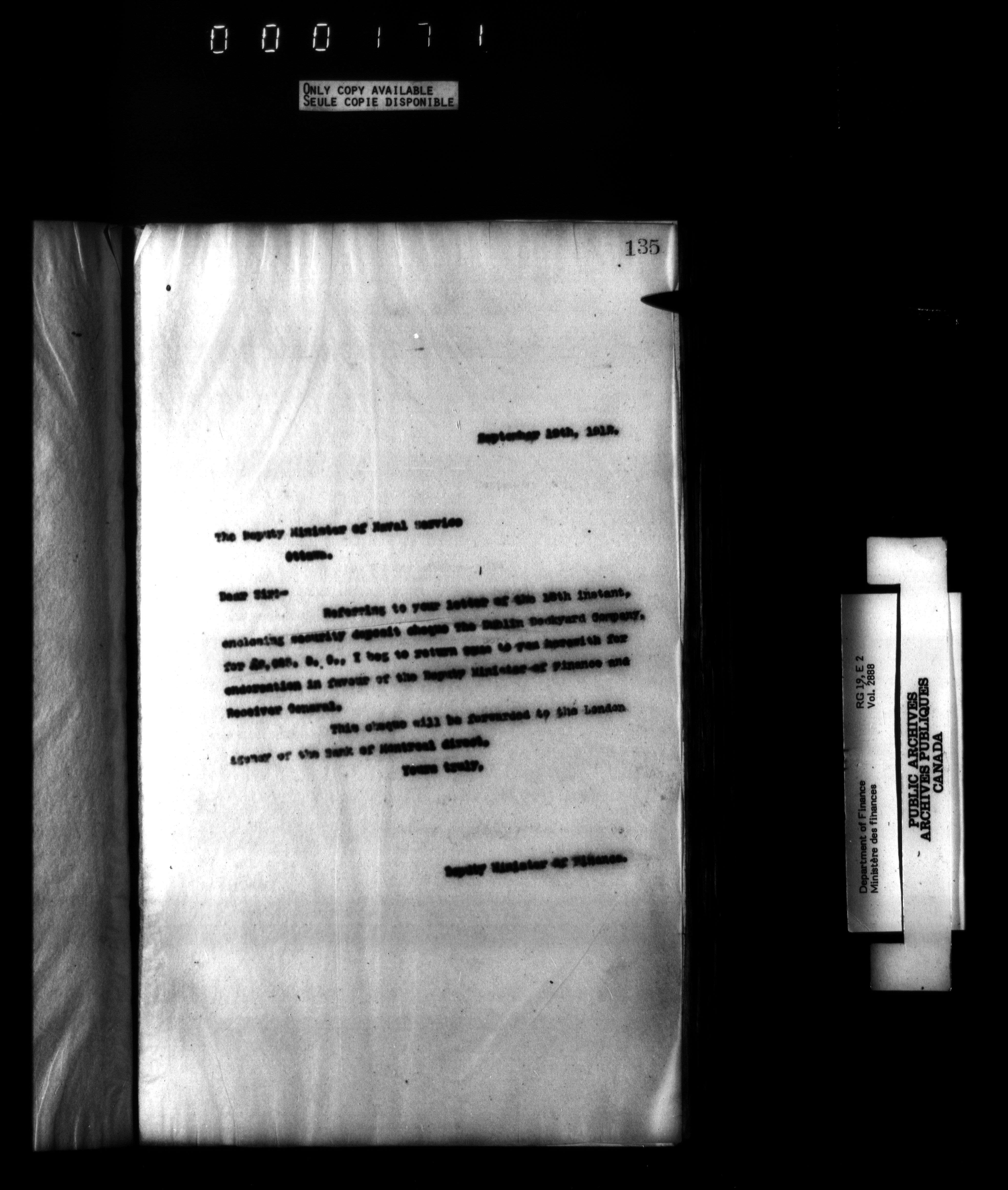 Outgoing correspondence of the office of the Deputy-Inspector General and Deputy Minister of Finance - 3071