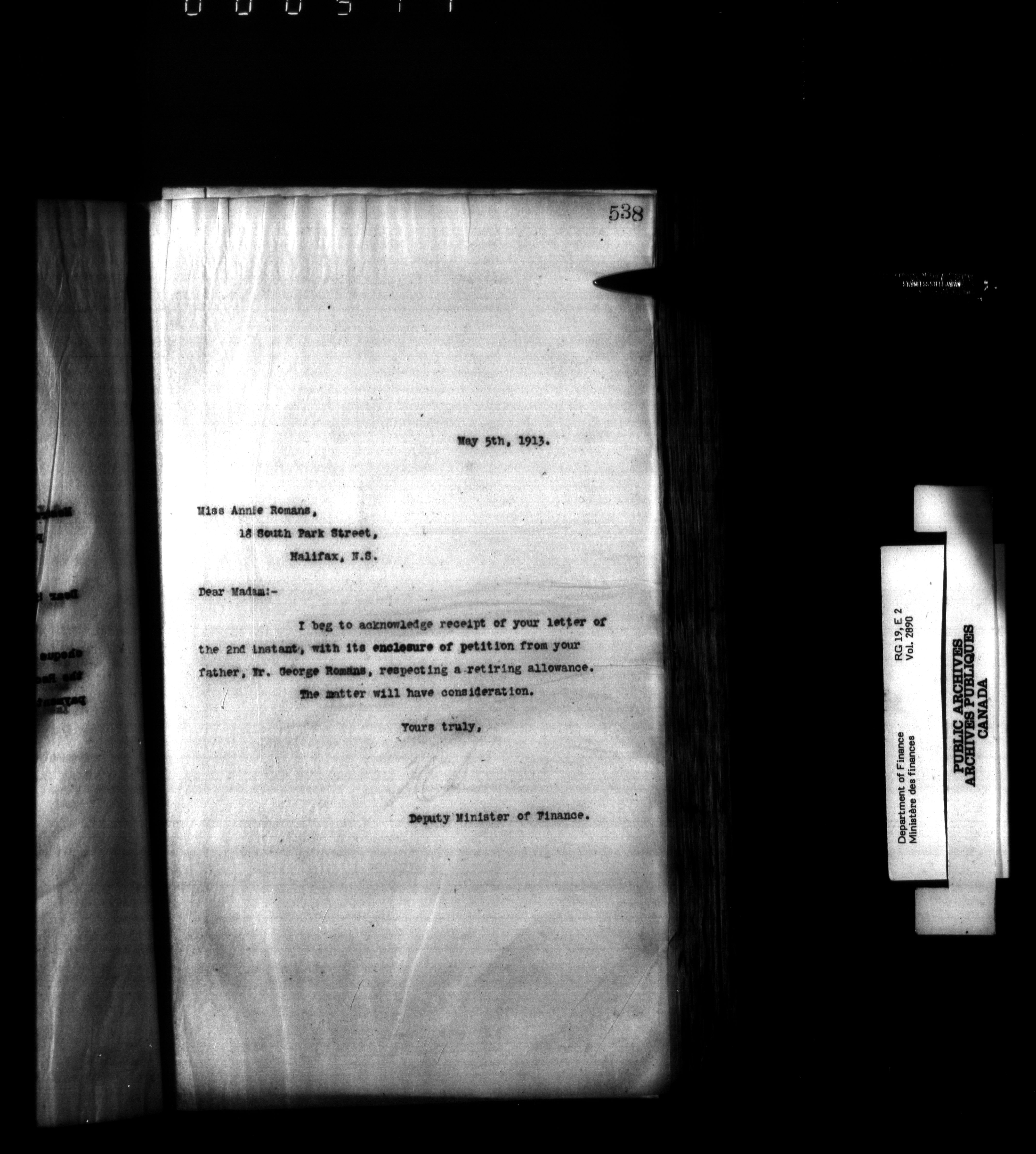 Outgoing correspondence of the office of the Deputy-Inspector General and Deputy Minister of Finance - 3073