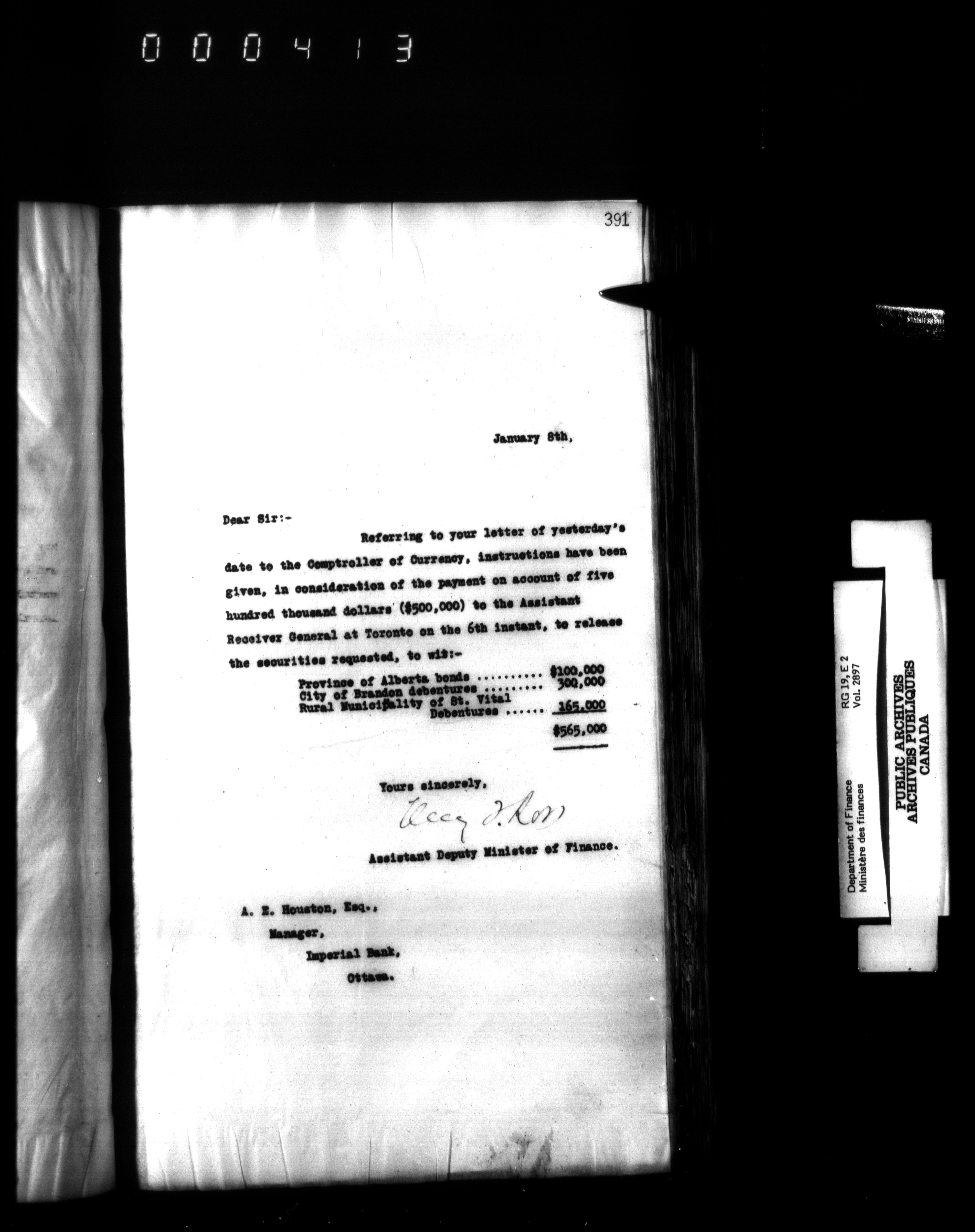 Outgoing correspondence of the office of the Deputy-Inspector General and Deputy Minister of Finance - 3078