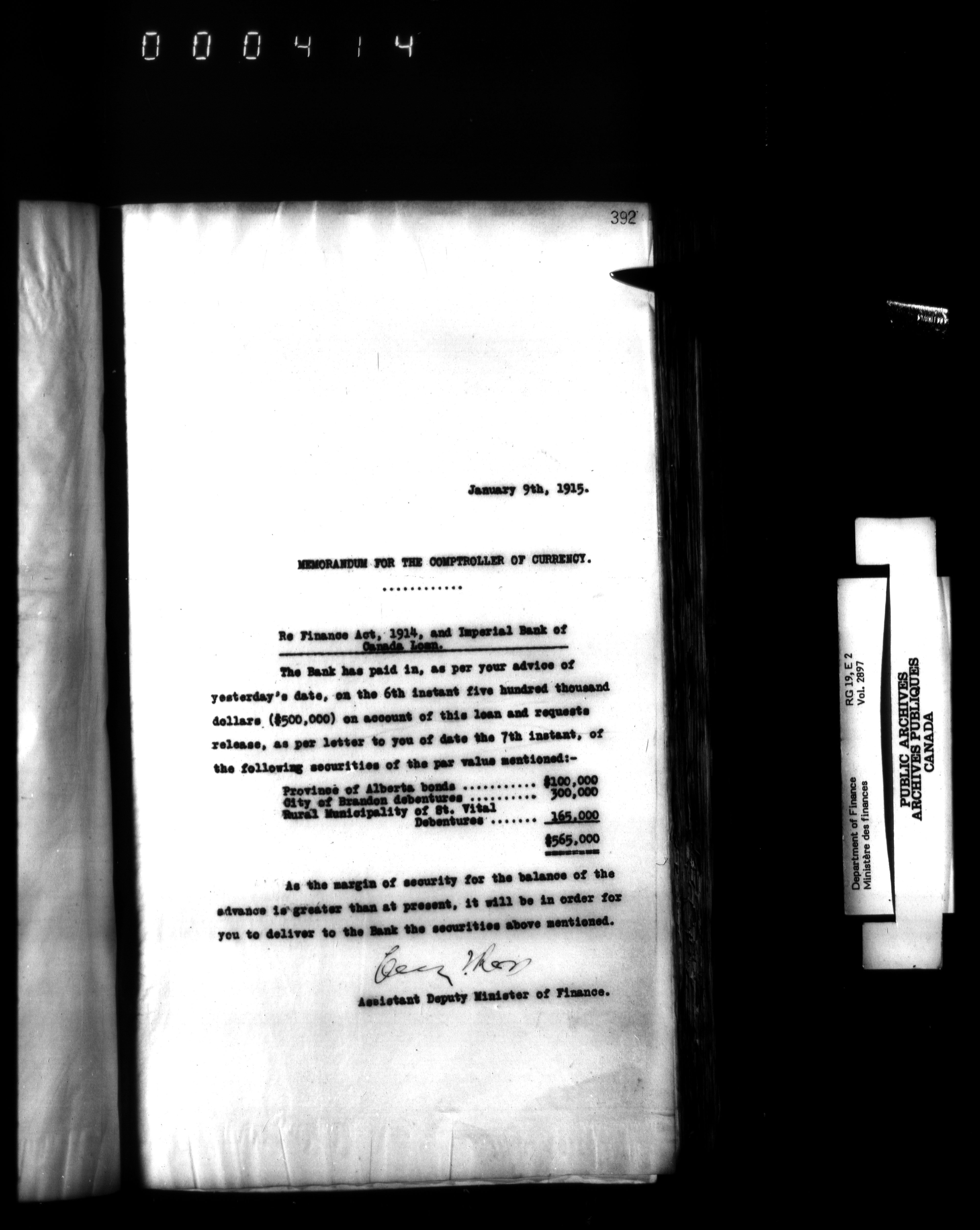 Office of the Deputy Minister of Finance : T-3078