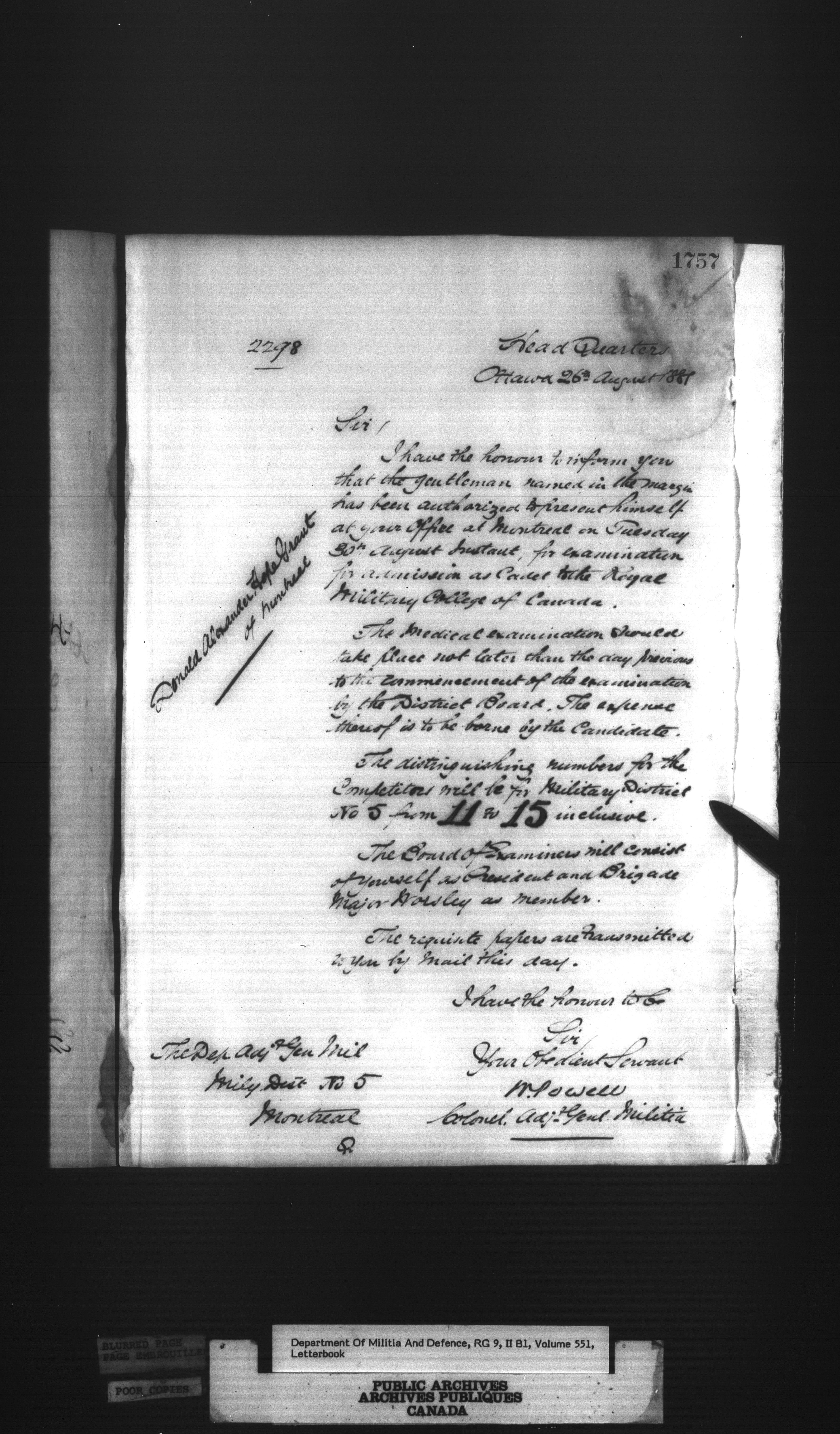 Correspondence of the General Officer Commanding (GOC) of the Canadian Militia and his predecessor, the Adjutant General - 308