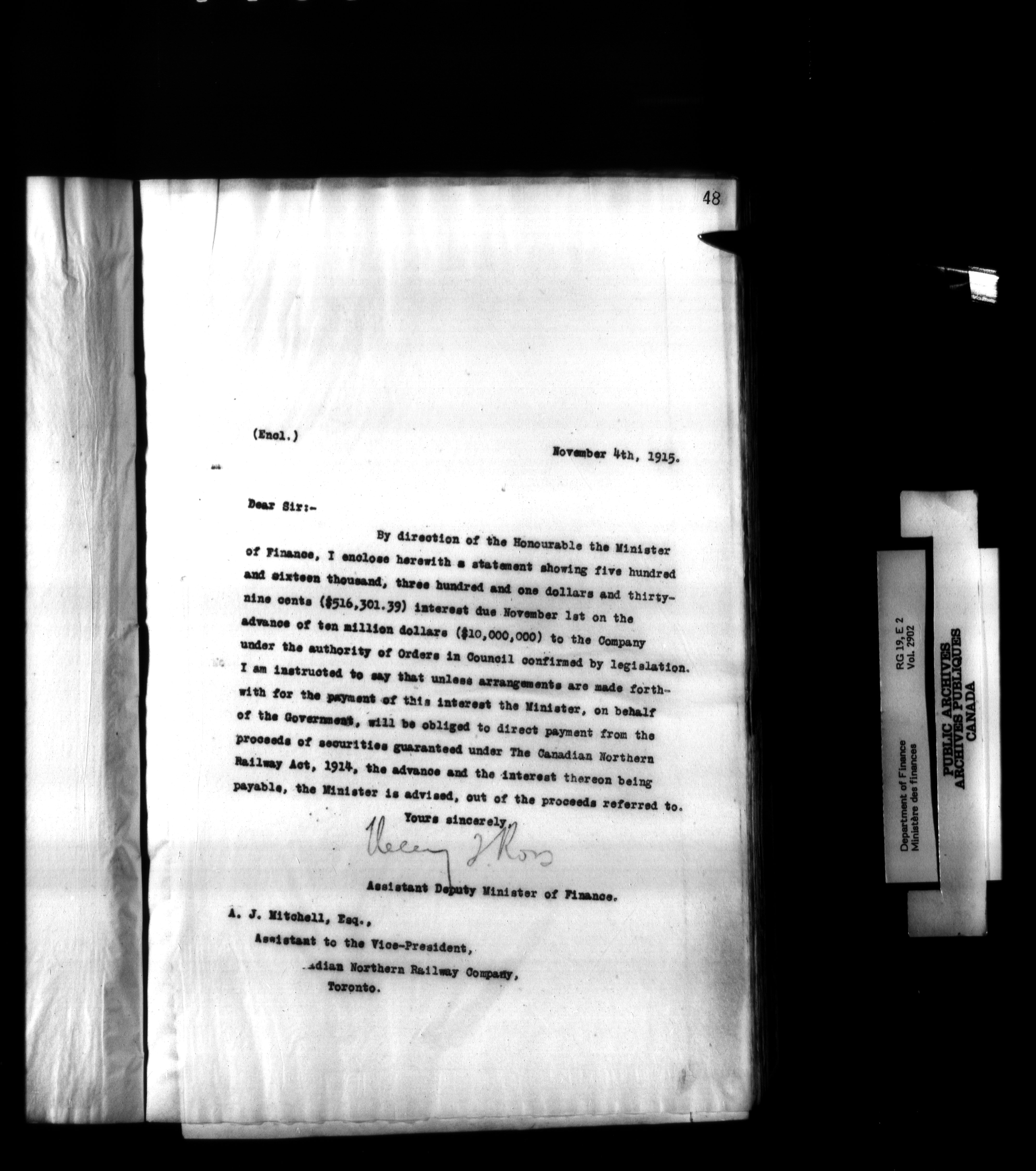 Outgoing correspondence of the office of the Deputy-Inspector General and Deputy Minister of Finance - 3082