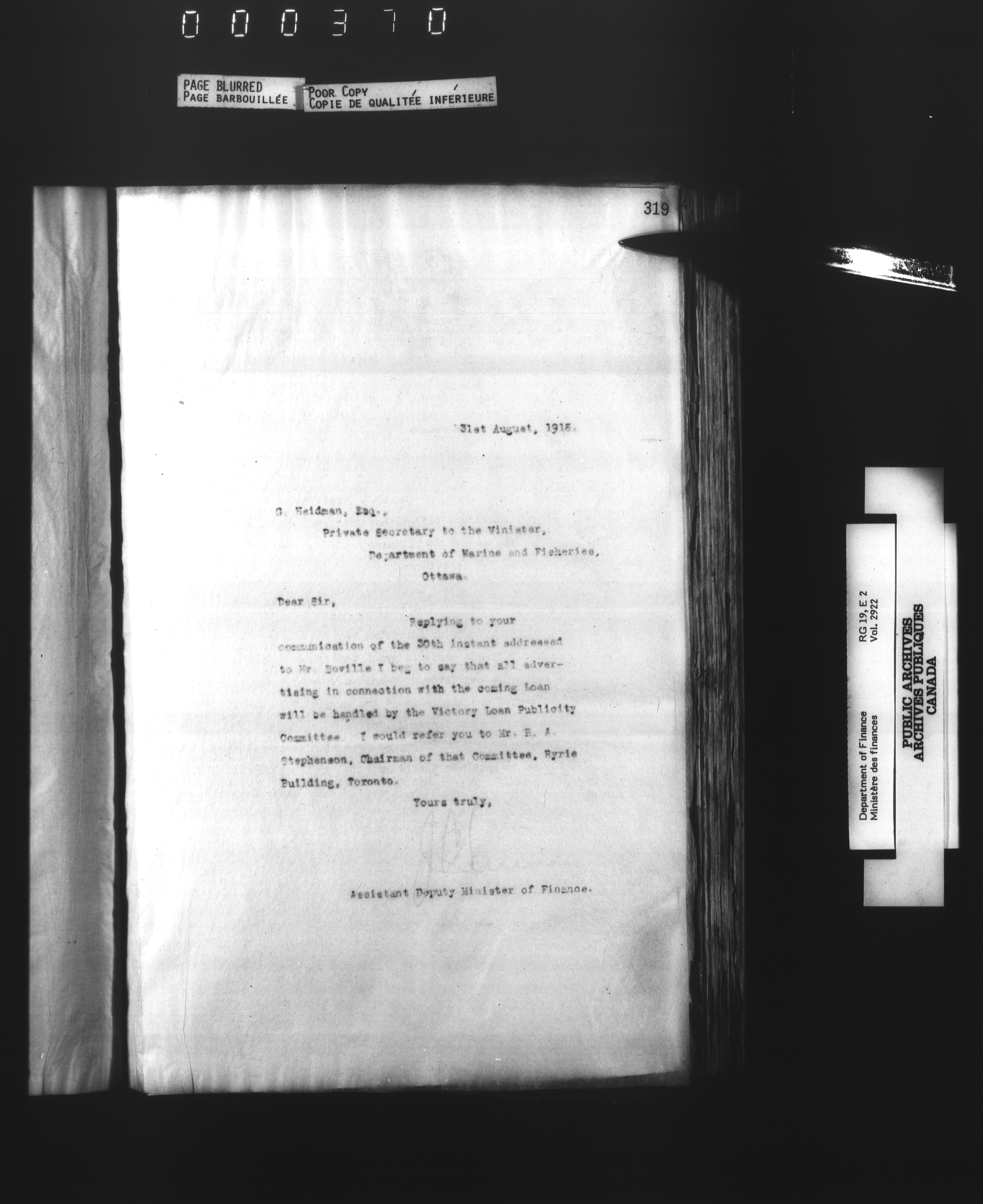 Office of the Deputy Minister of Finance : T-3099