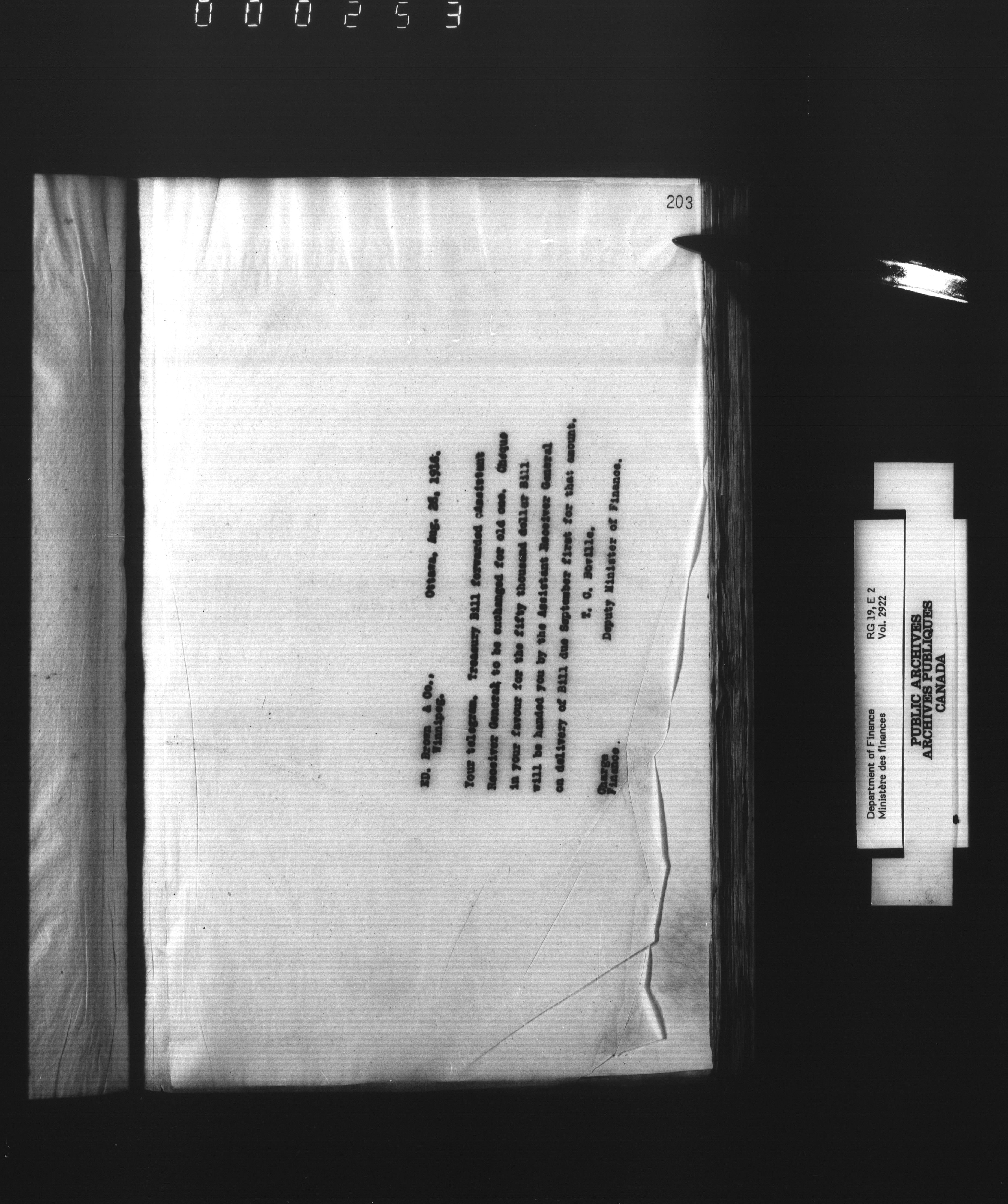 Office of the Deputy Minister of Finance : T-3099