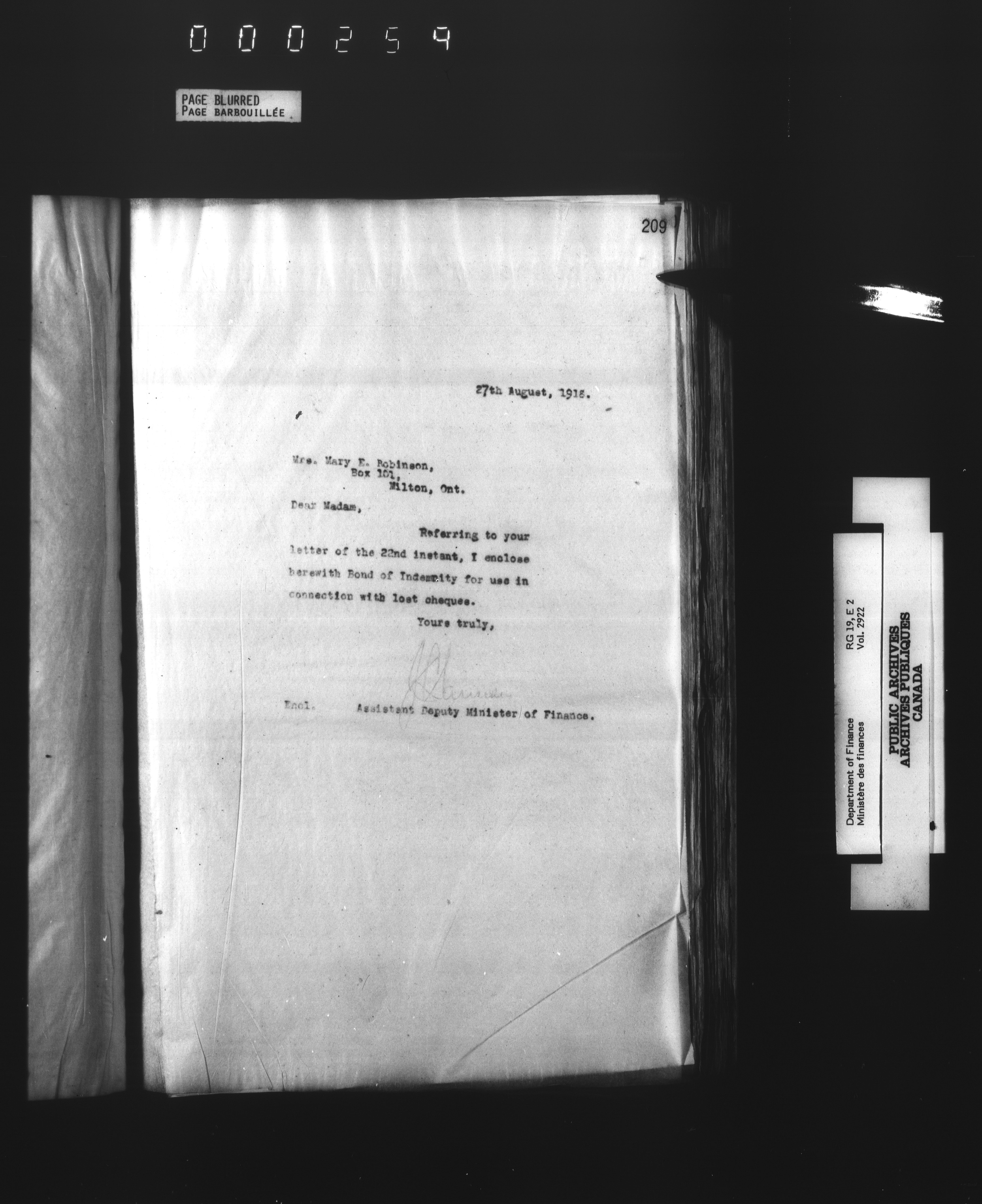 Office of the Deputy Minister of Finance : T-3099