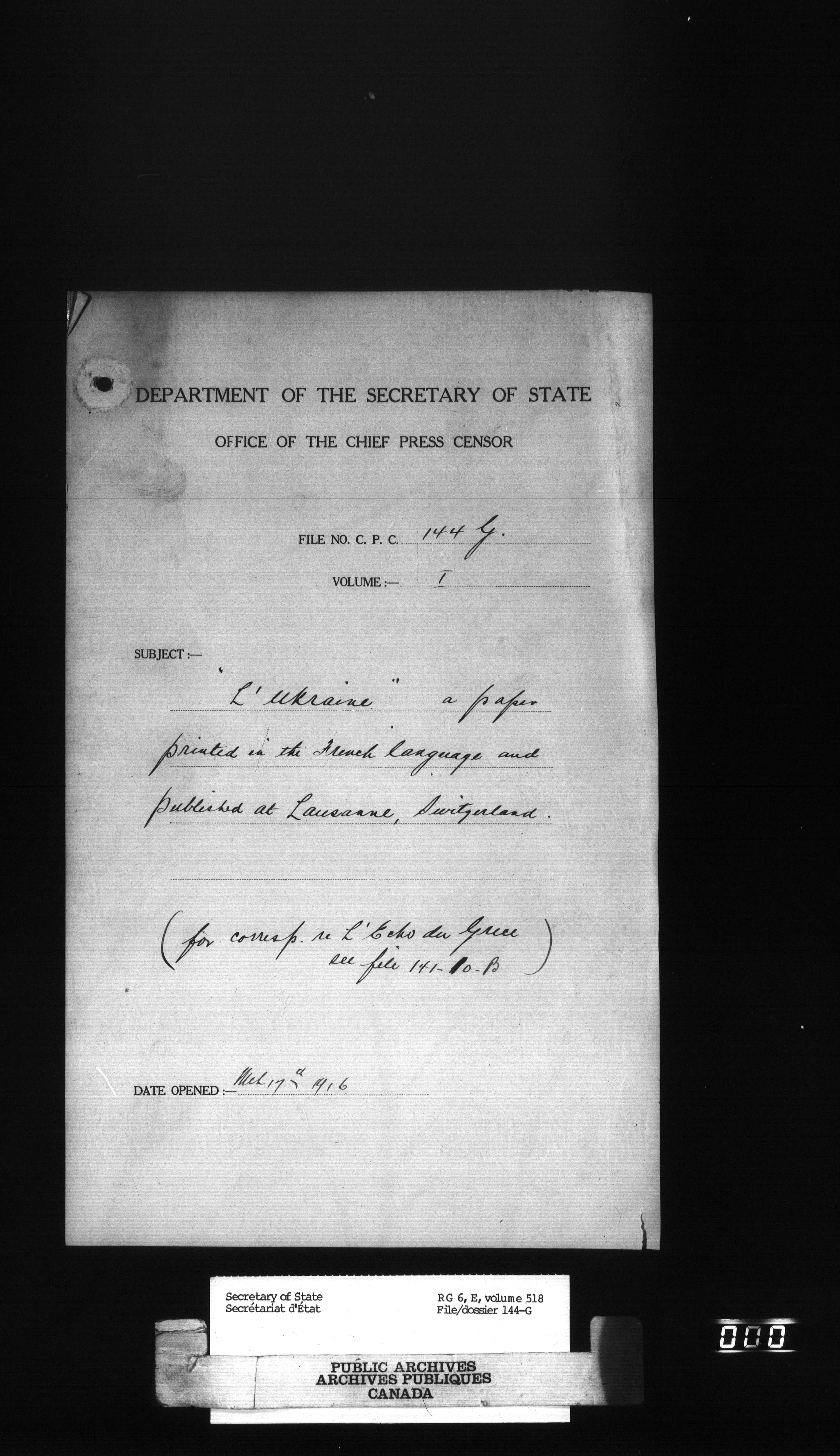 Secretary of State : Chief Press Censor - 31