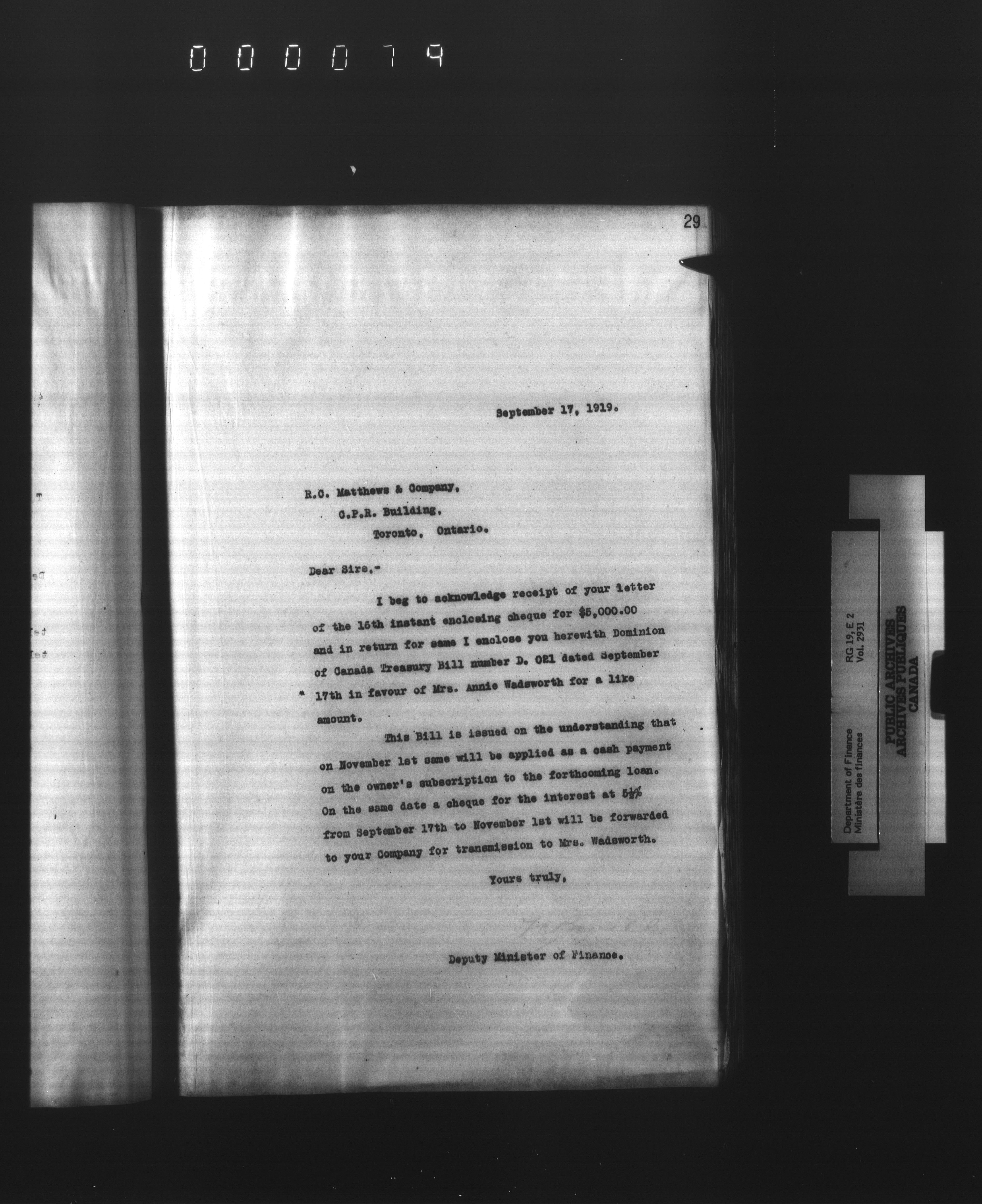 Outgoing correspondence of the office of the Deputy-Inspector General and Deputy Minister of Finance - 3105
