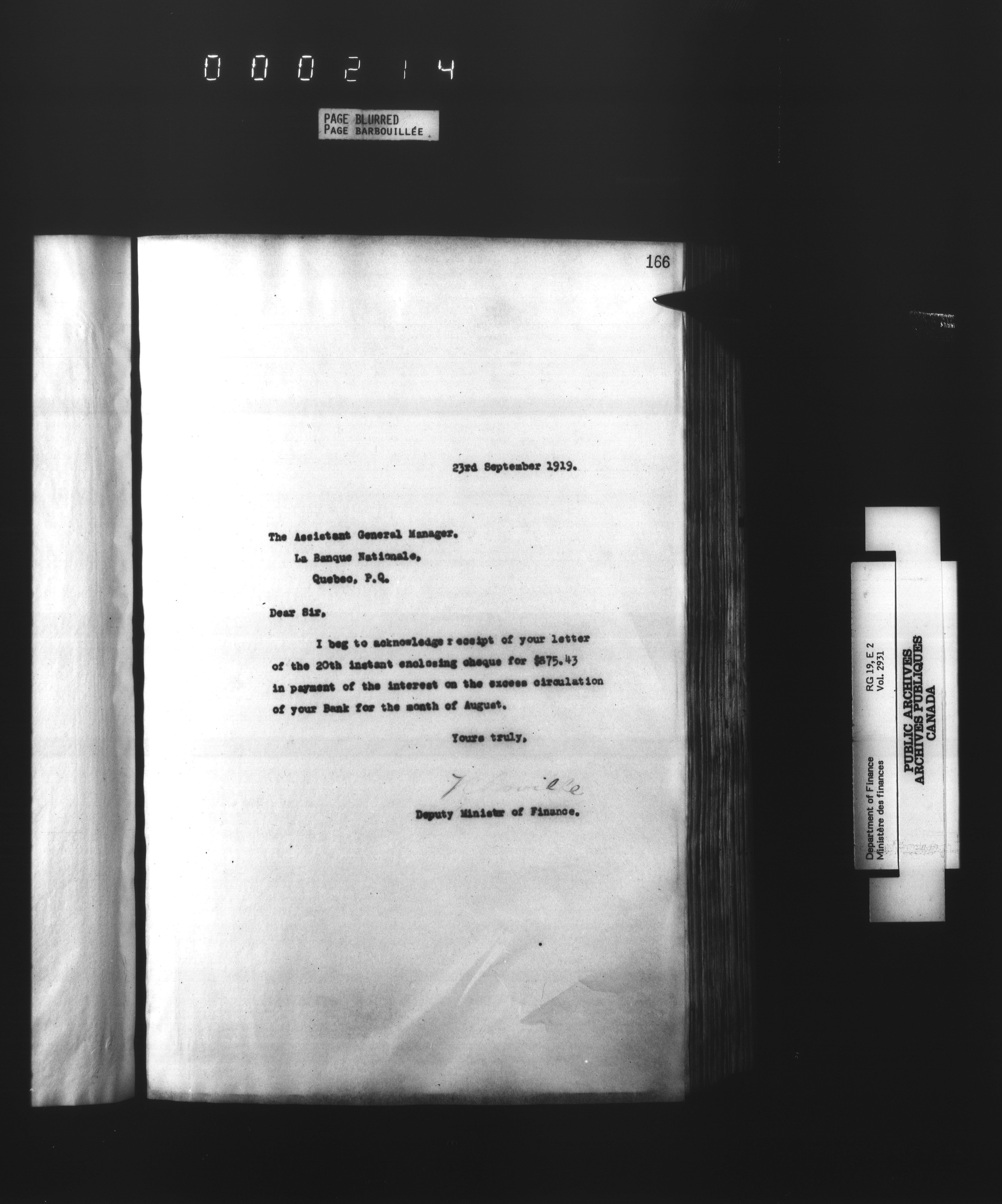 Outgoing correspondence of the office of the Deputy-Inspector General and Deputy Minister of Finance - 3106