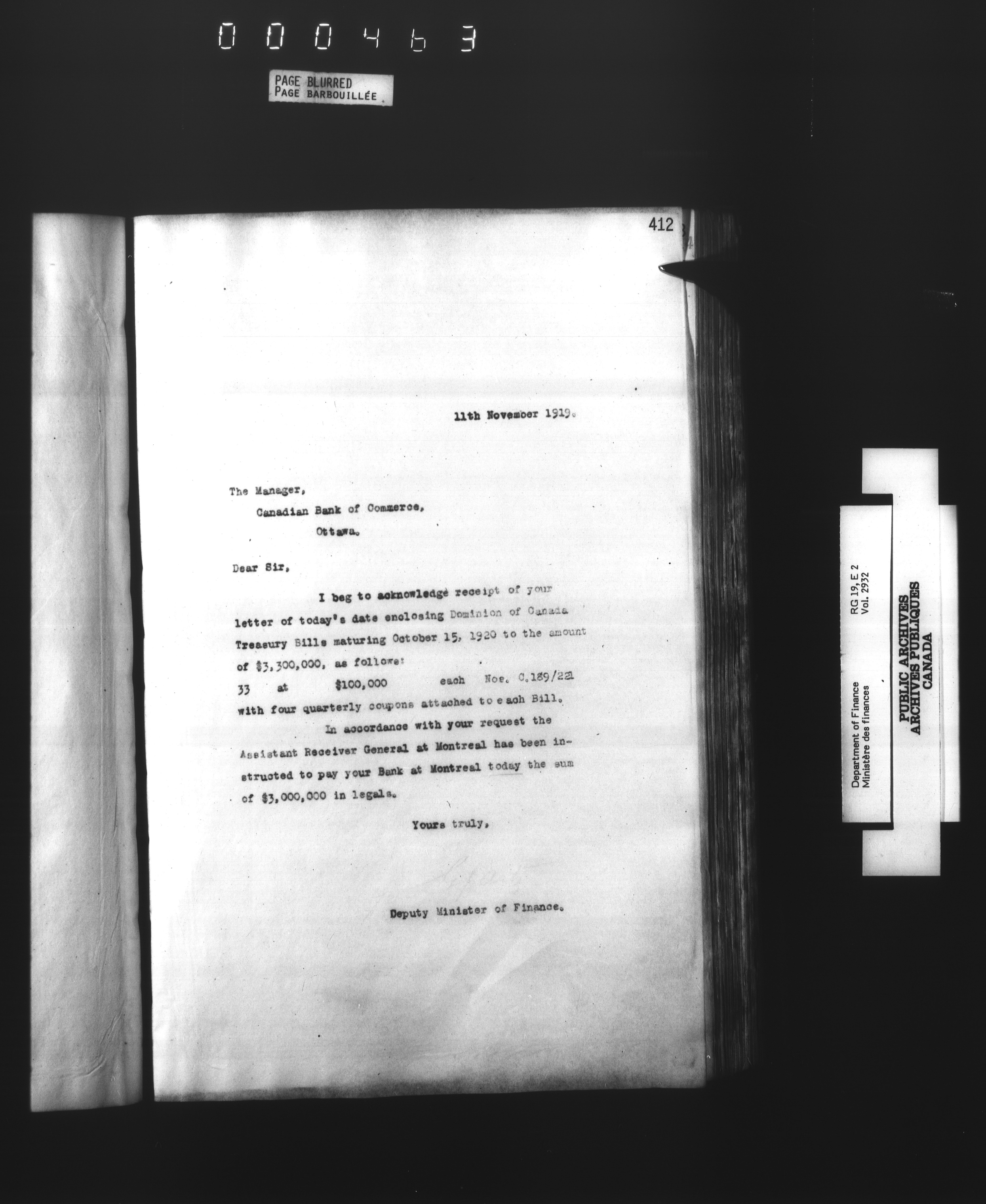 Outgoing correspondence of the office of the Deputy-Inspector General and Deputy Minister of Finance - 3107
