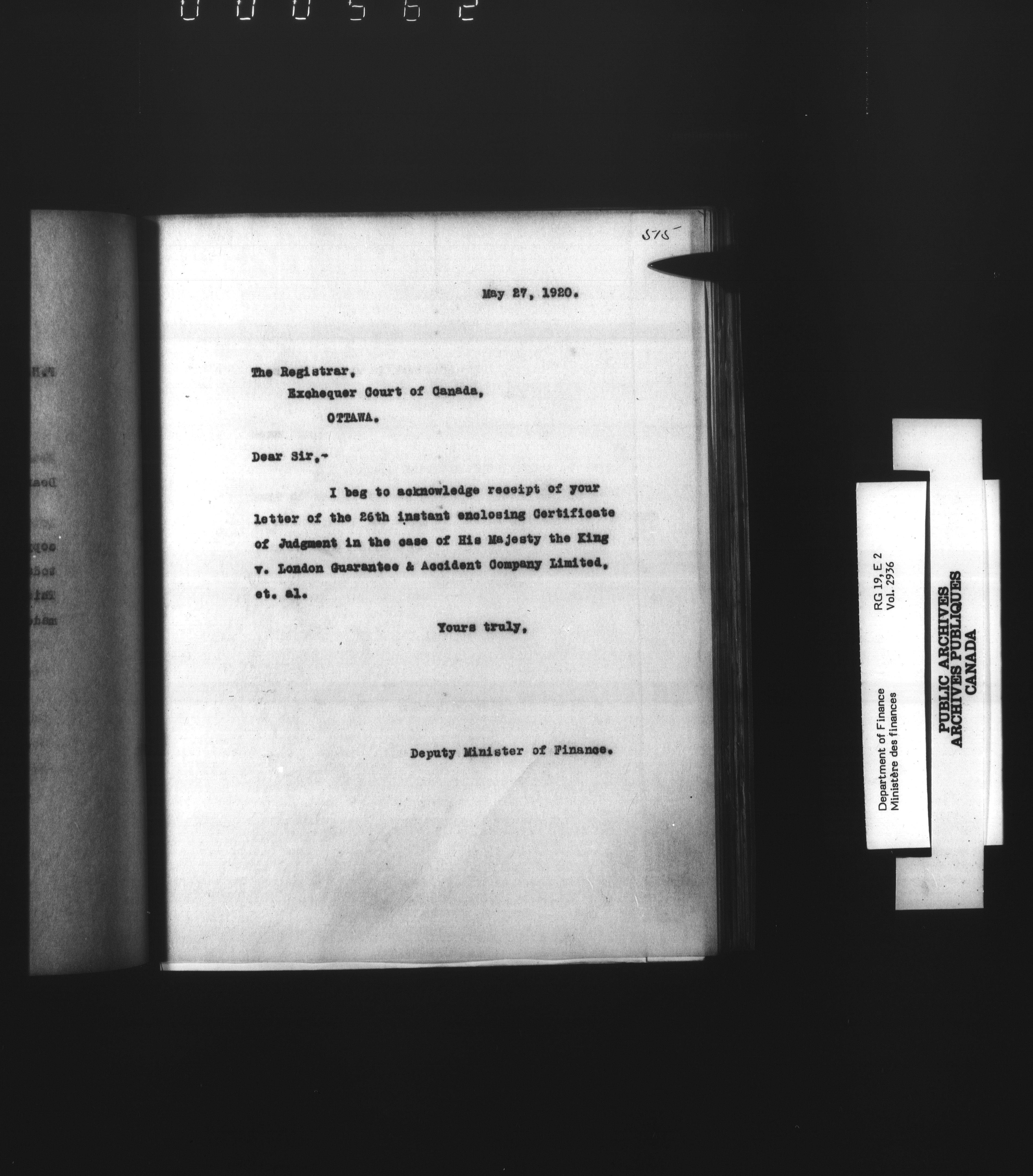 Outgoing correspondence of the office of the Deputy-Inspector General and Deputy Minister of Finance - 3110