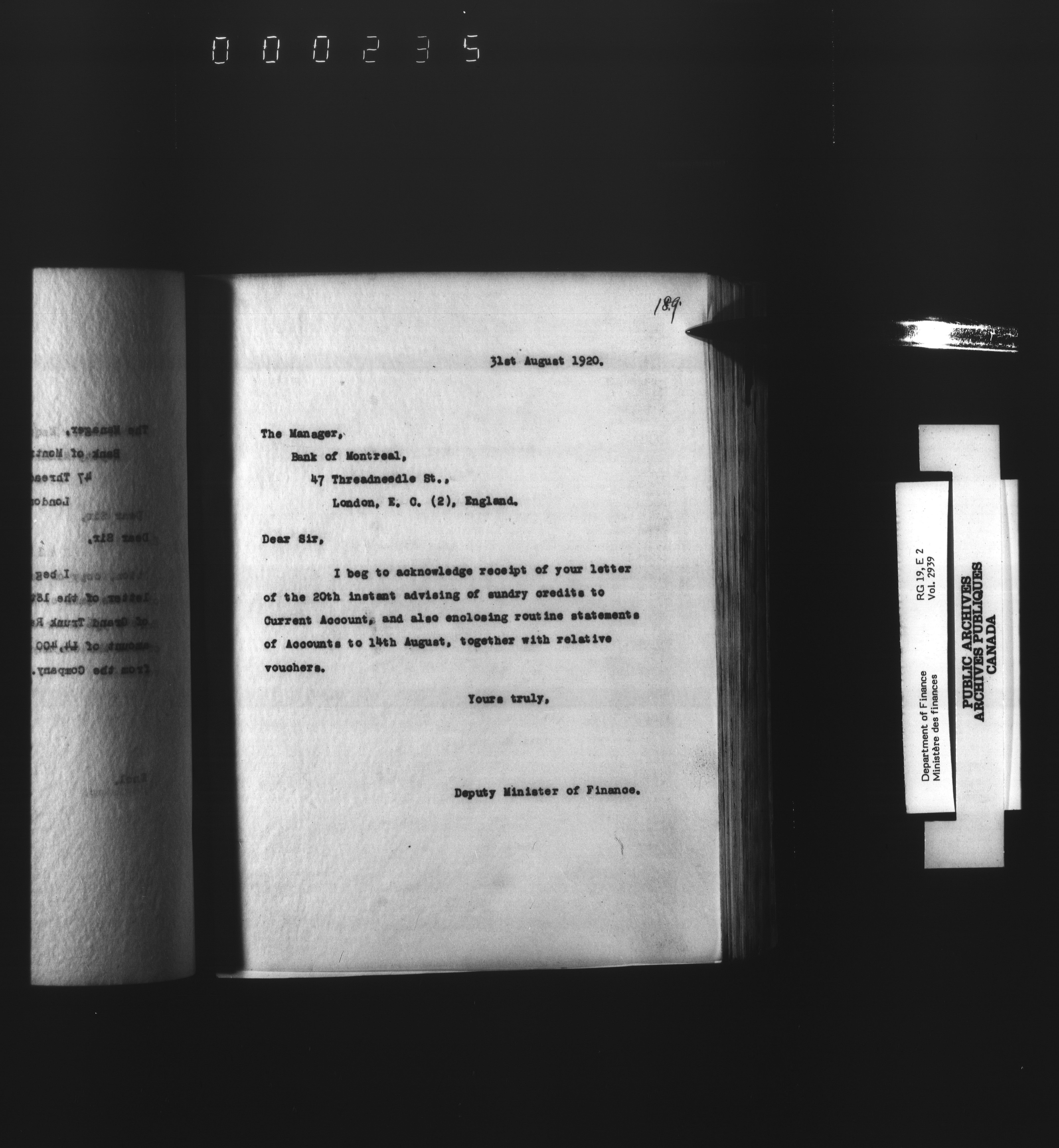 Outgoing correspondence of the office of the Deputy-Inspector General and Deputy Minister of Finance - 3111