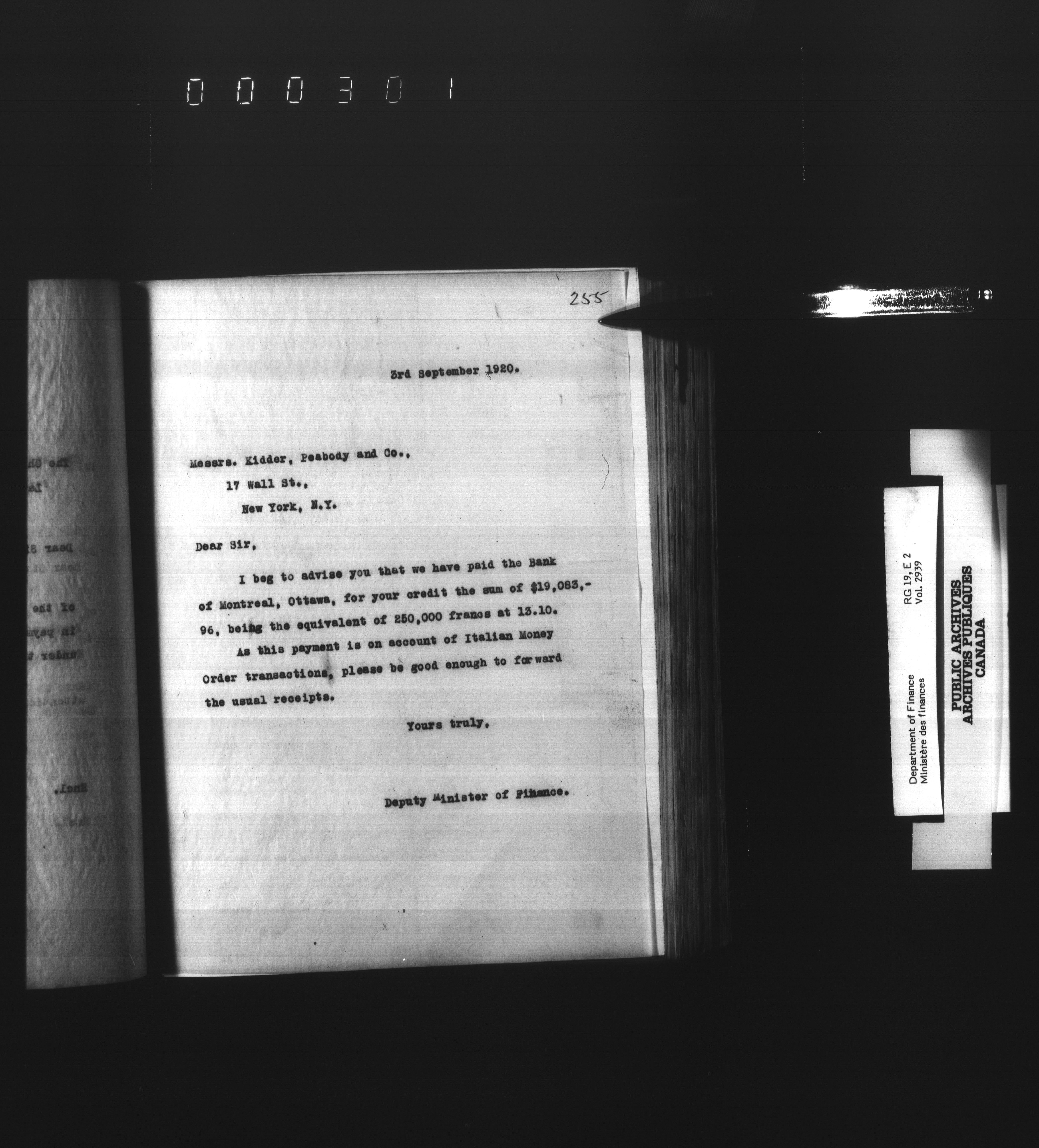 Outgoing correspondence of the office of the Deputy-Inspector General and Deputy Minister of Finance - 3111