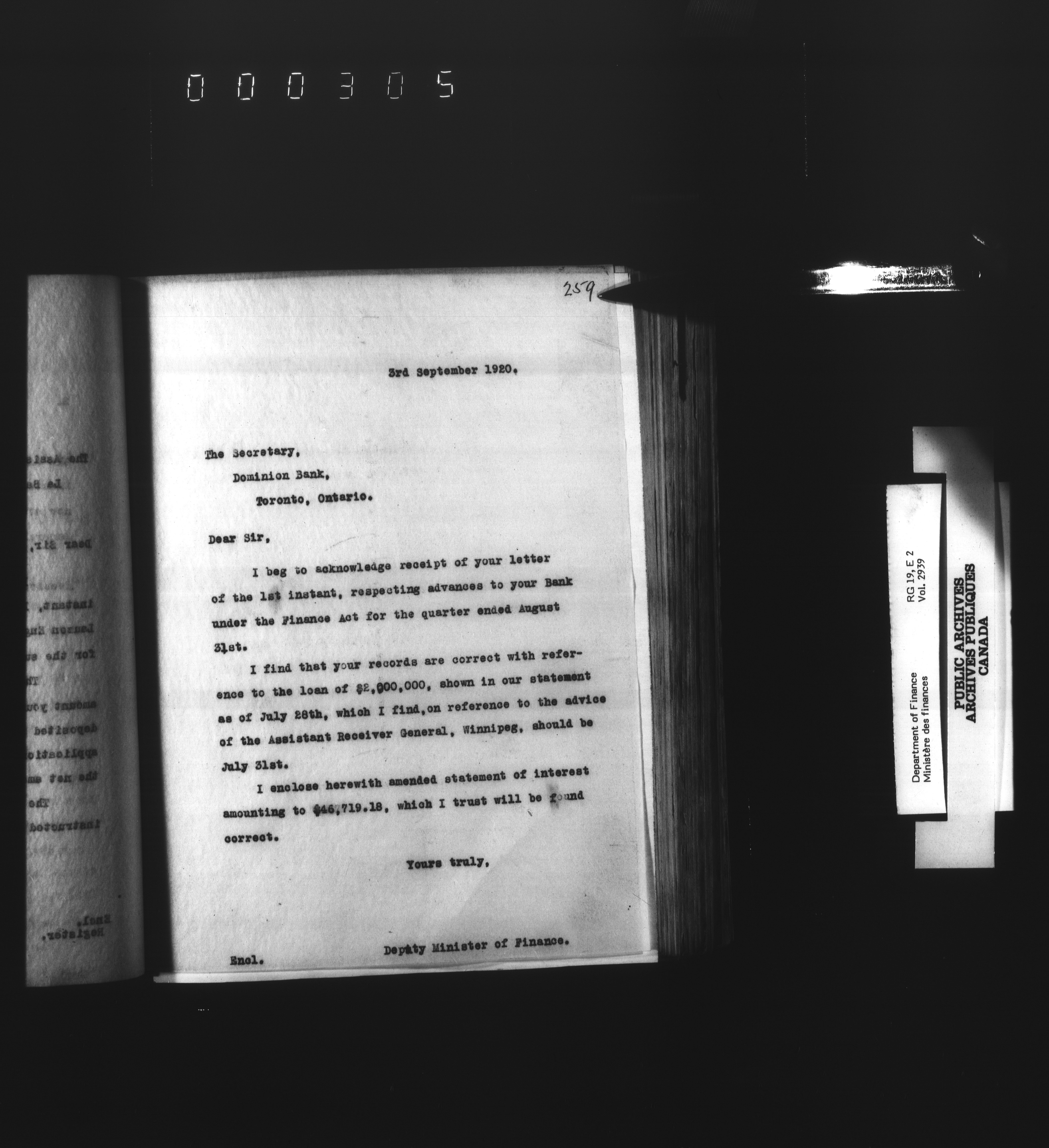 Outgoing correspondence of the office of the Deputy-Inspector General and Deputy Minister of Finance - 3111