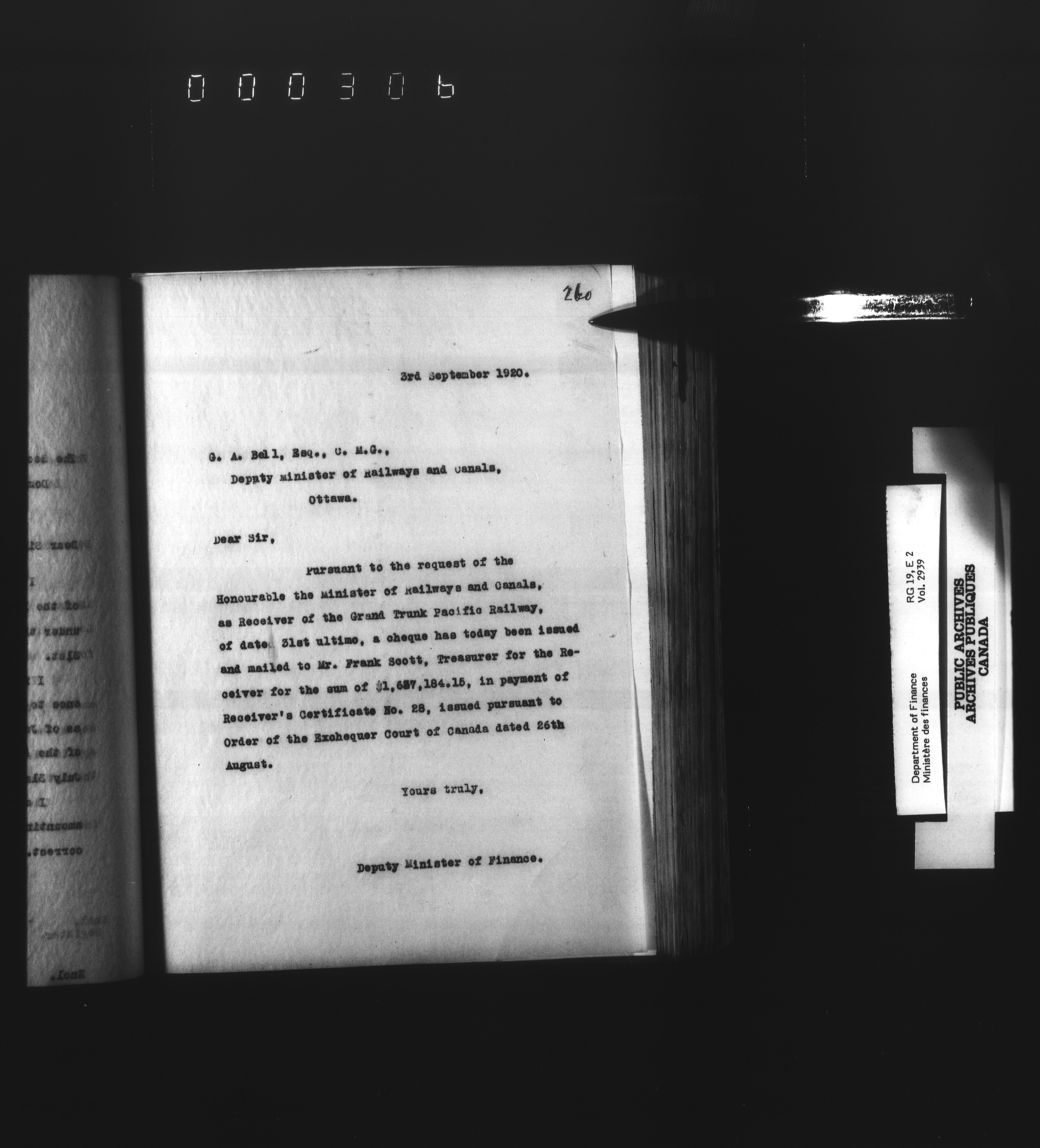 Outgoing correspondence of the office of the Deputy-Inspector General and Deputy Minister of Finance - 3111