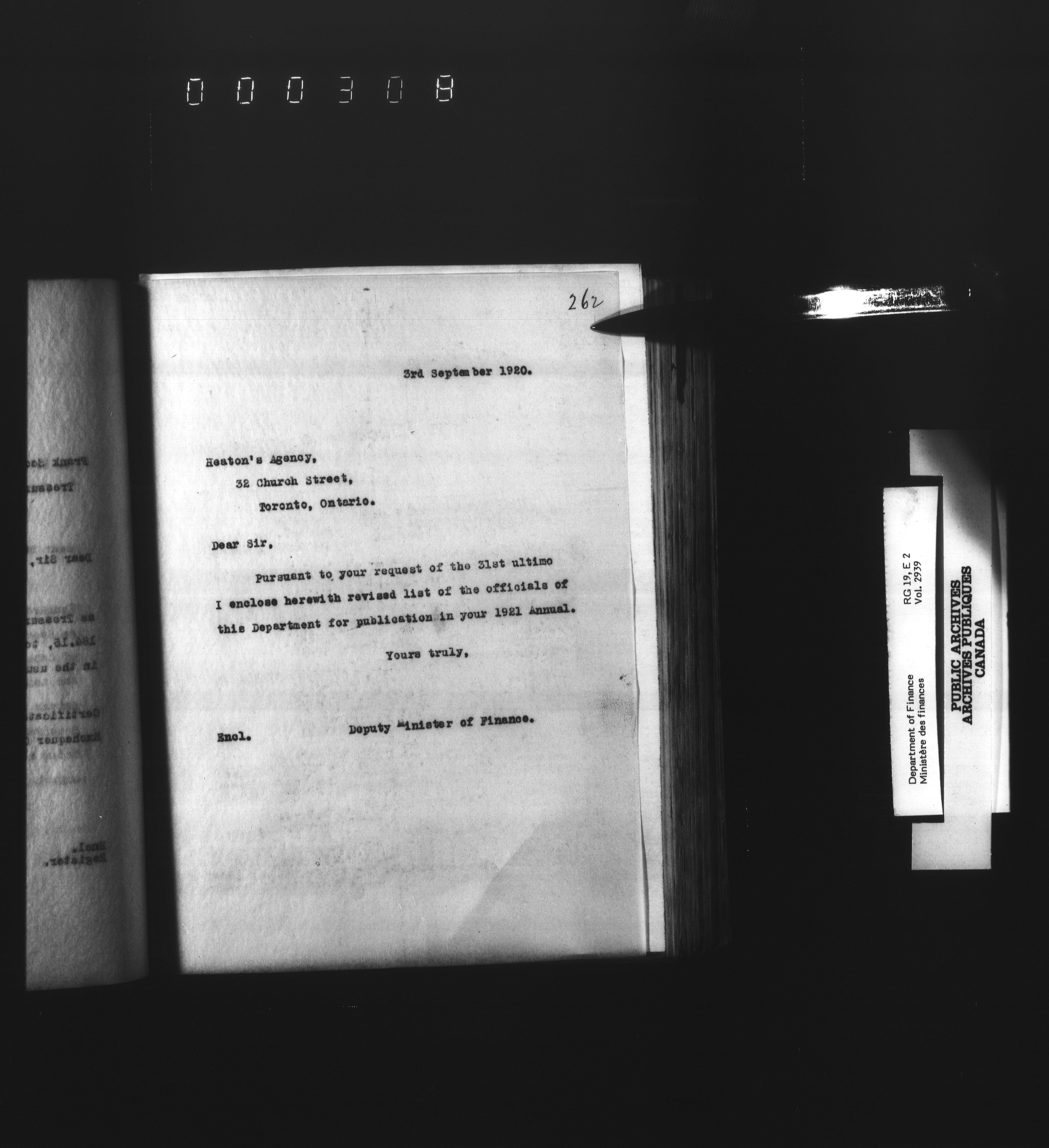 Outgoing correspondence of the office of the Deputy-Inspector General and Deputy Minister of Finance - 3111