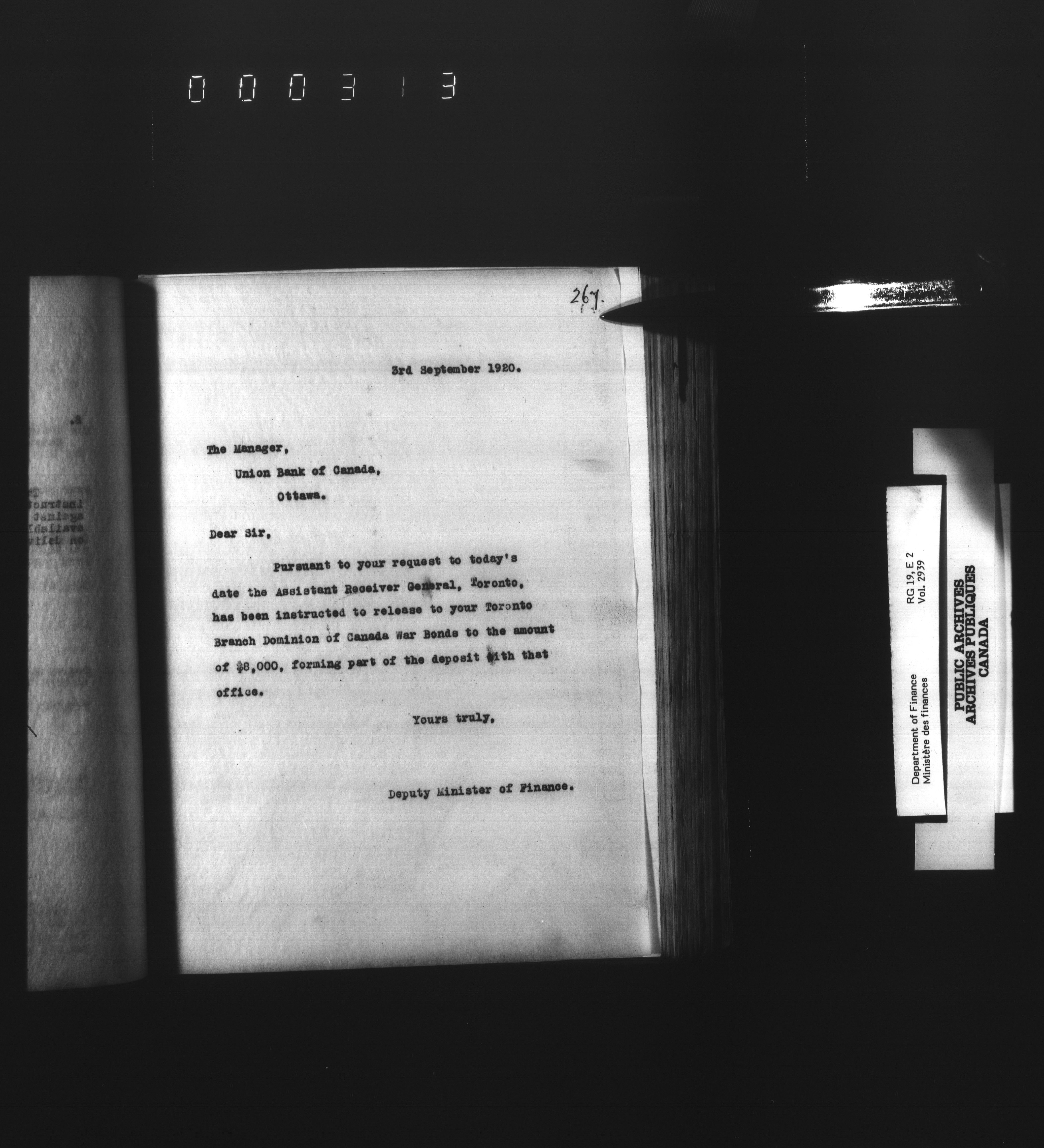 Outgoing correspondence of the office of the Deputy-Inspector General and Deputy Minister of Finance - 3111