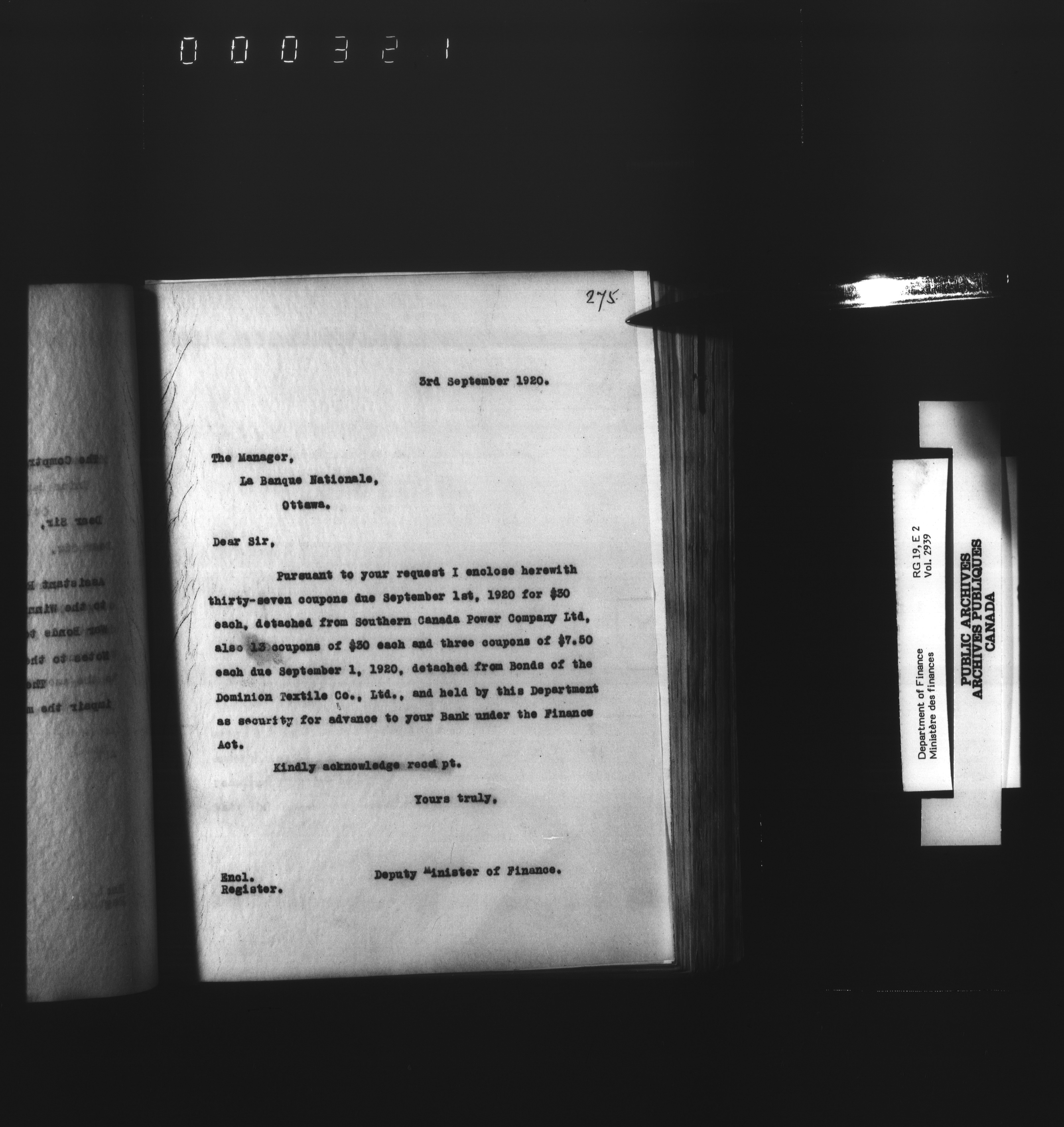 Outgoing correspondence of the office of the Deputy-Inspector General and Deputy Minister of Finance - 3111