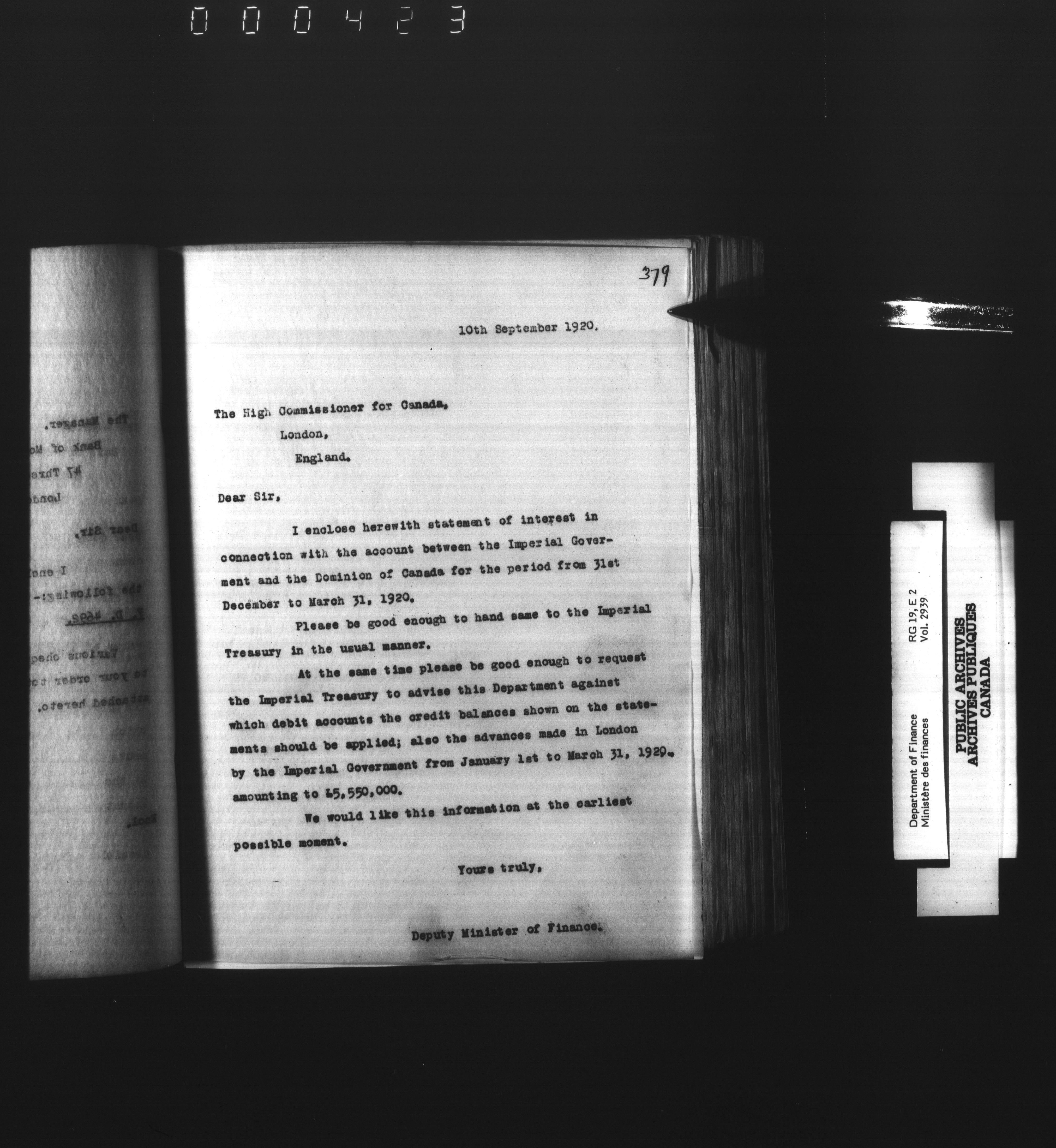 Outgoing correspondence of the office of the Deputy-Inspector General and Deputy Minister of Finance - 3112