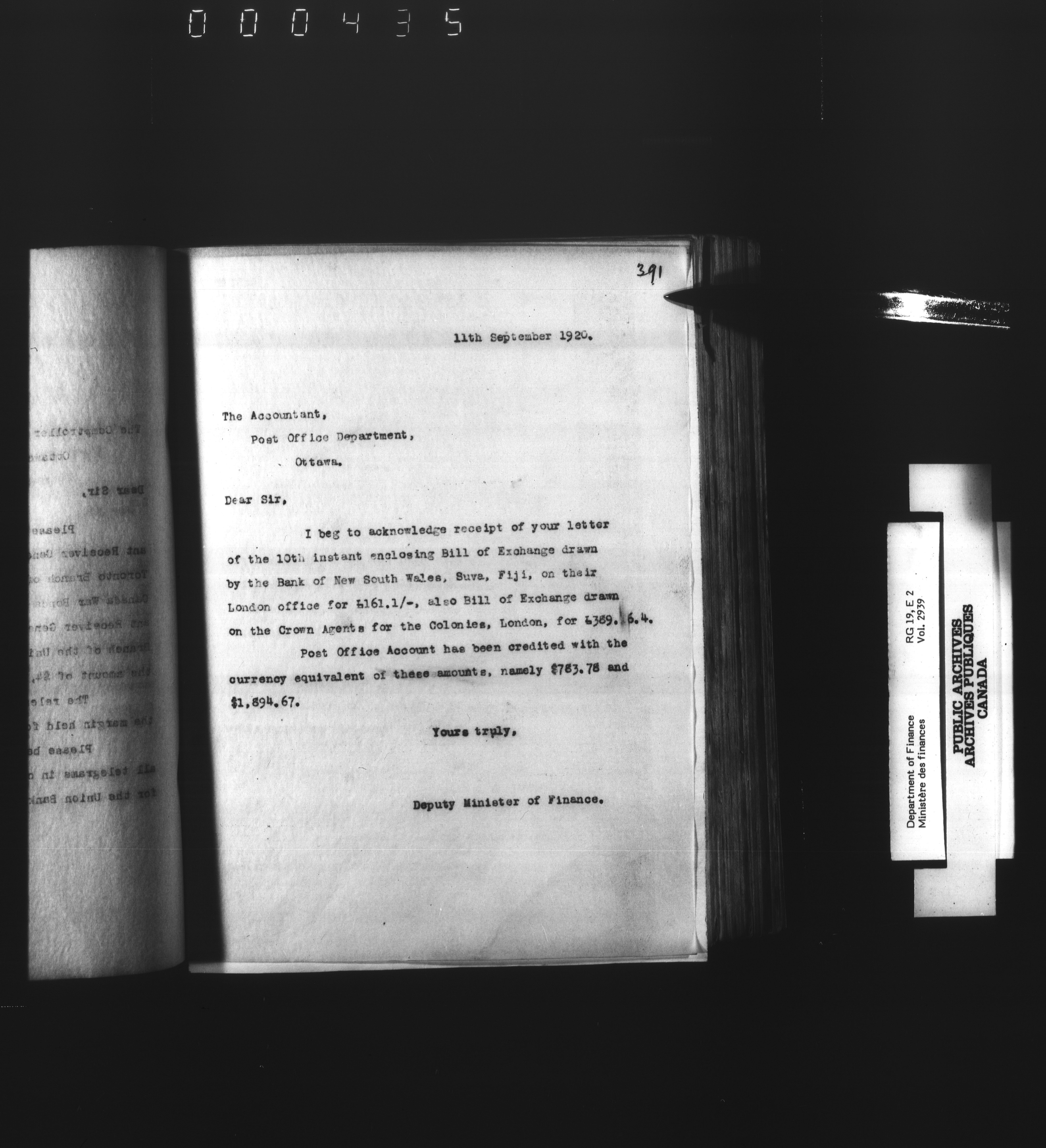 Outgoing correspondence of the office of the Deputy-Inspector General and Deputy Minister of Finance - 3112