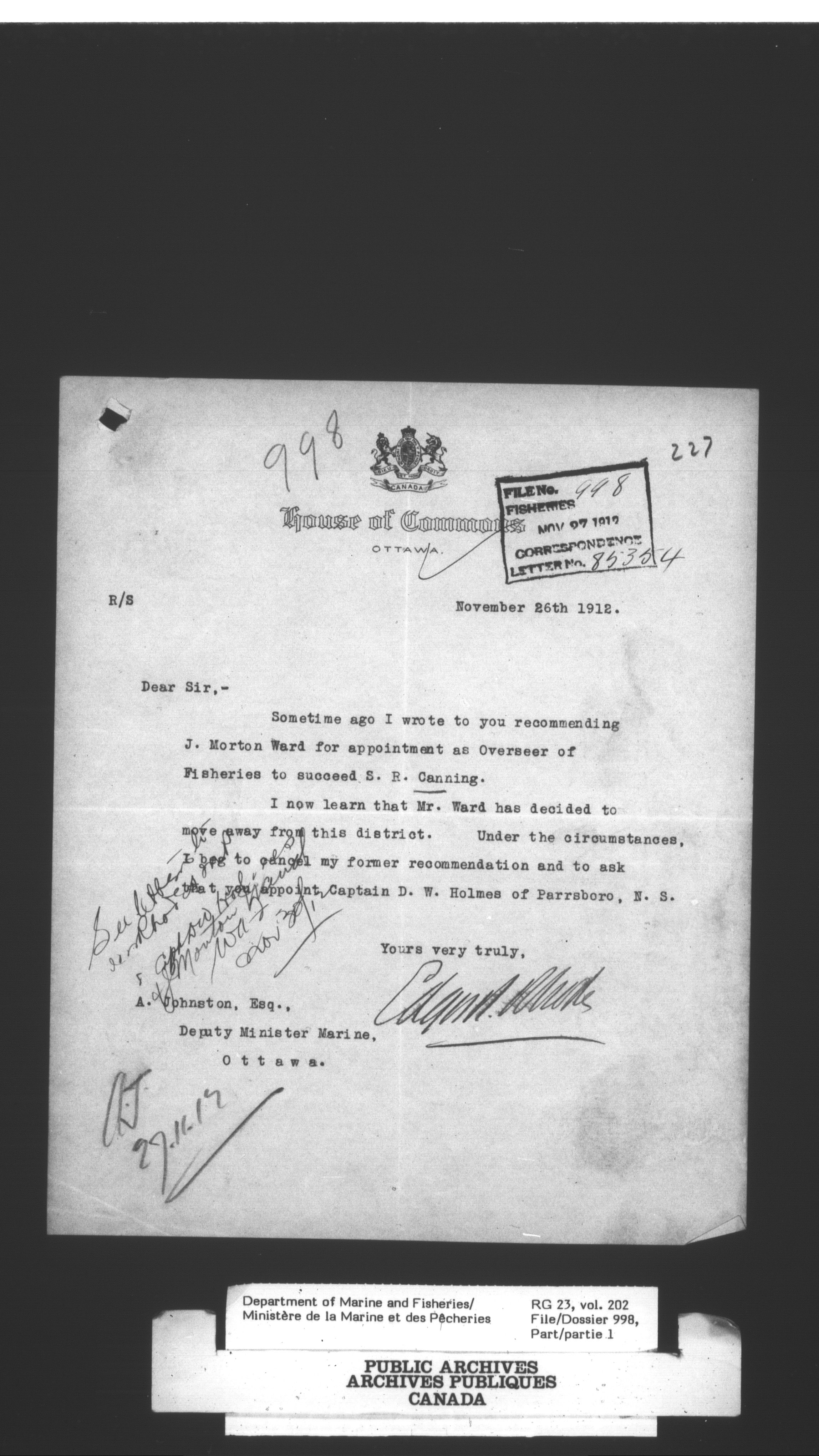 Fisheries Branch Registry files - 3118