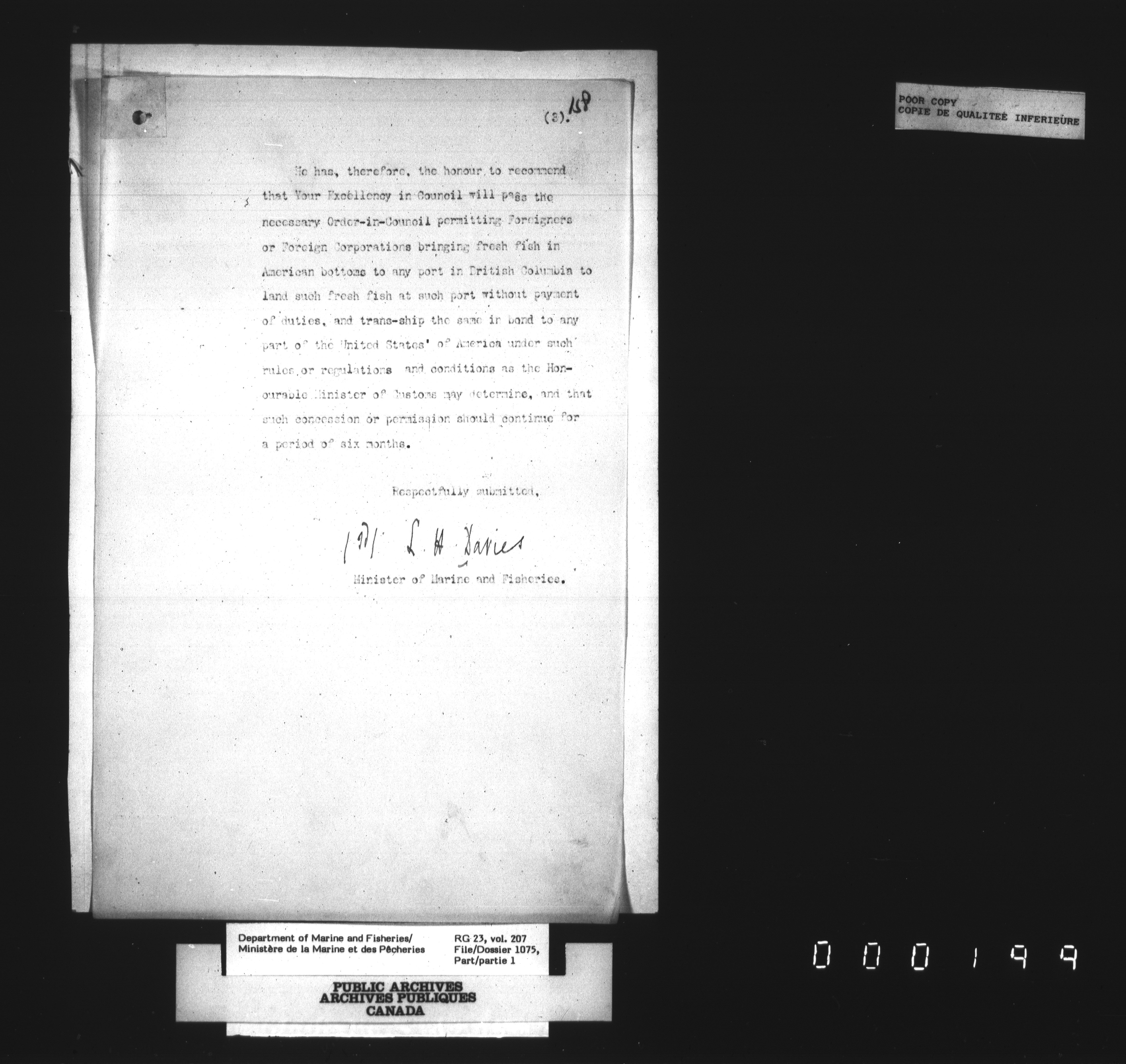 Fisheries Branch Registry files - 3122