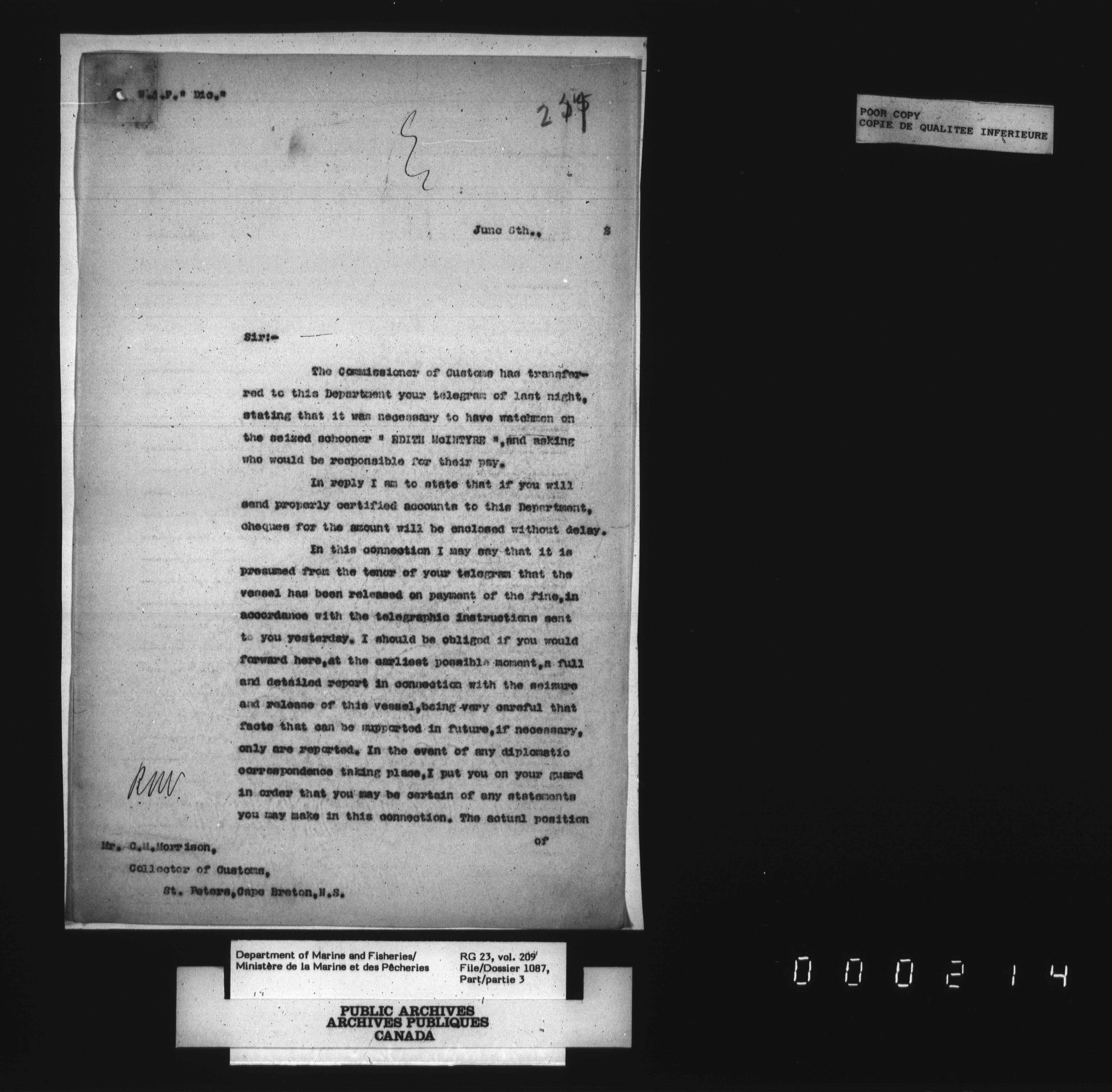 Fisheries Branch Registry files - 3125