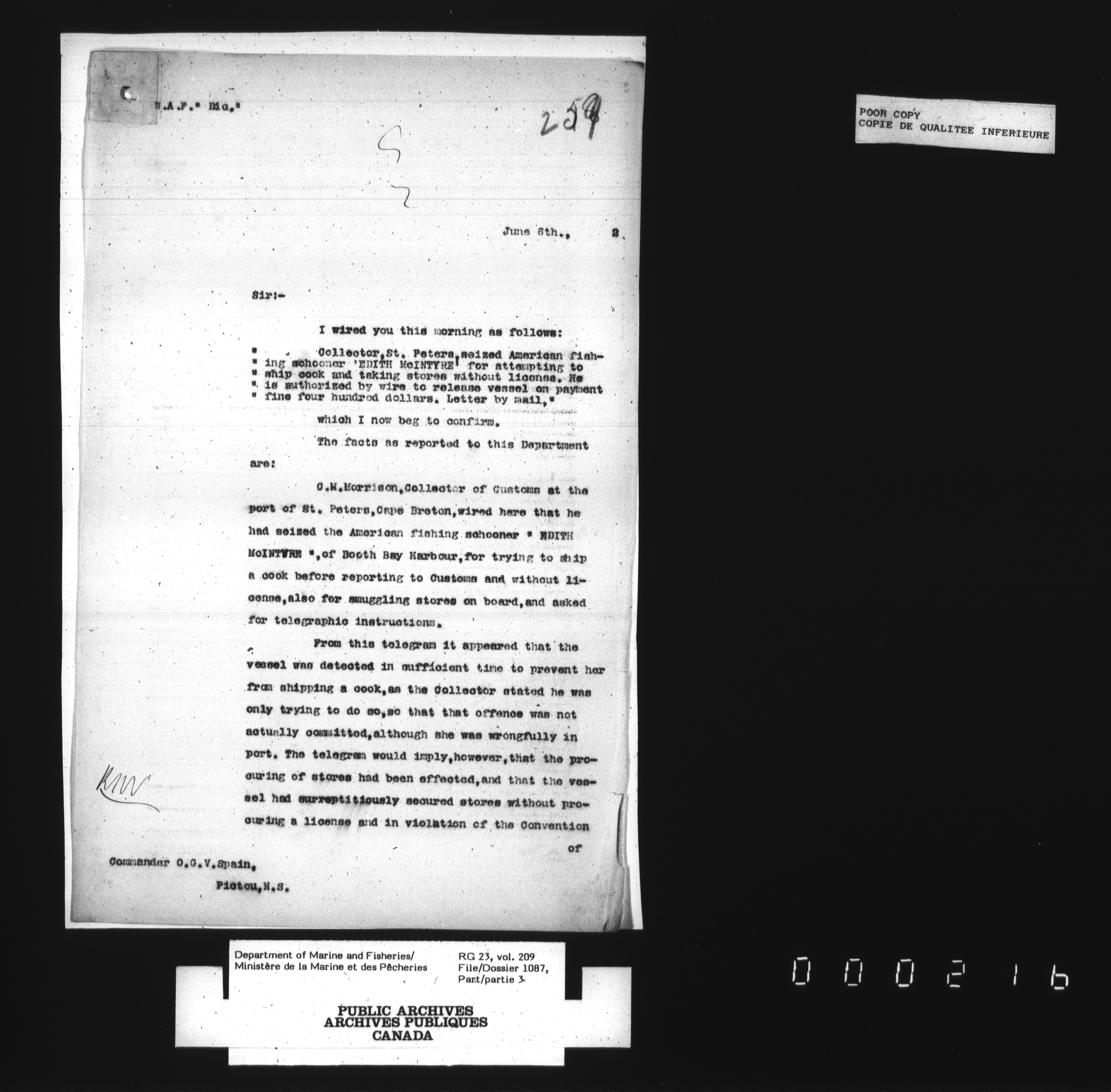 Fisheries Branch Registry files - 3125