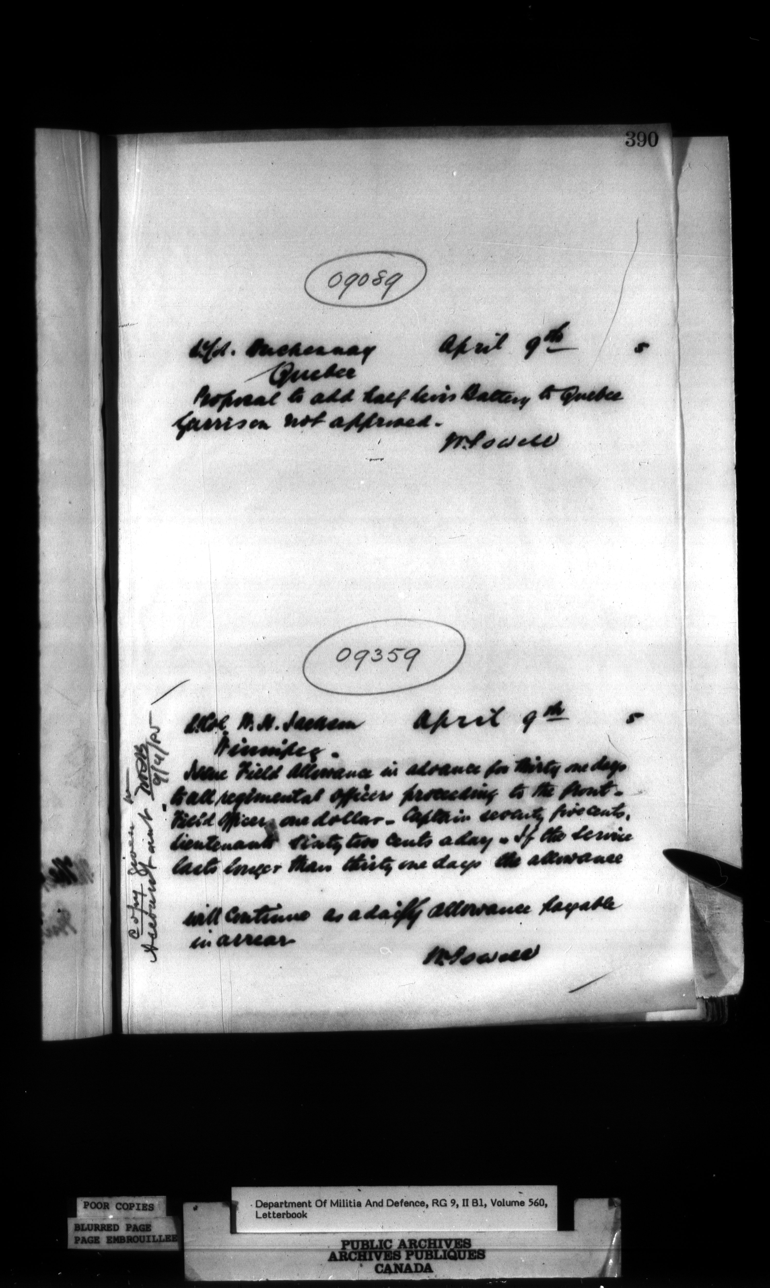 Correspondence of the General Officer Commanding (GOC) of the Canadian Militia and his predecessor, the Adjutant General - 315