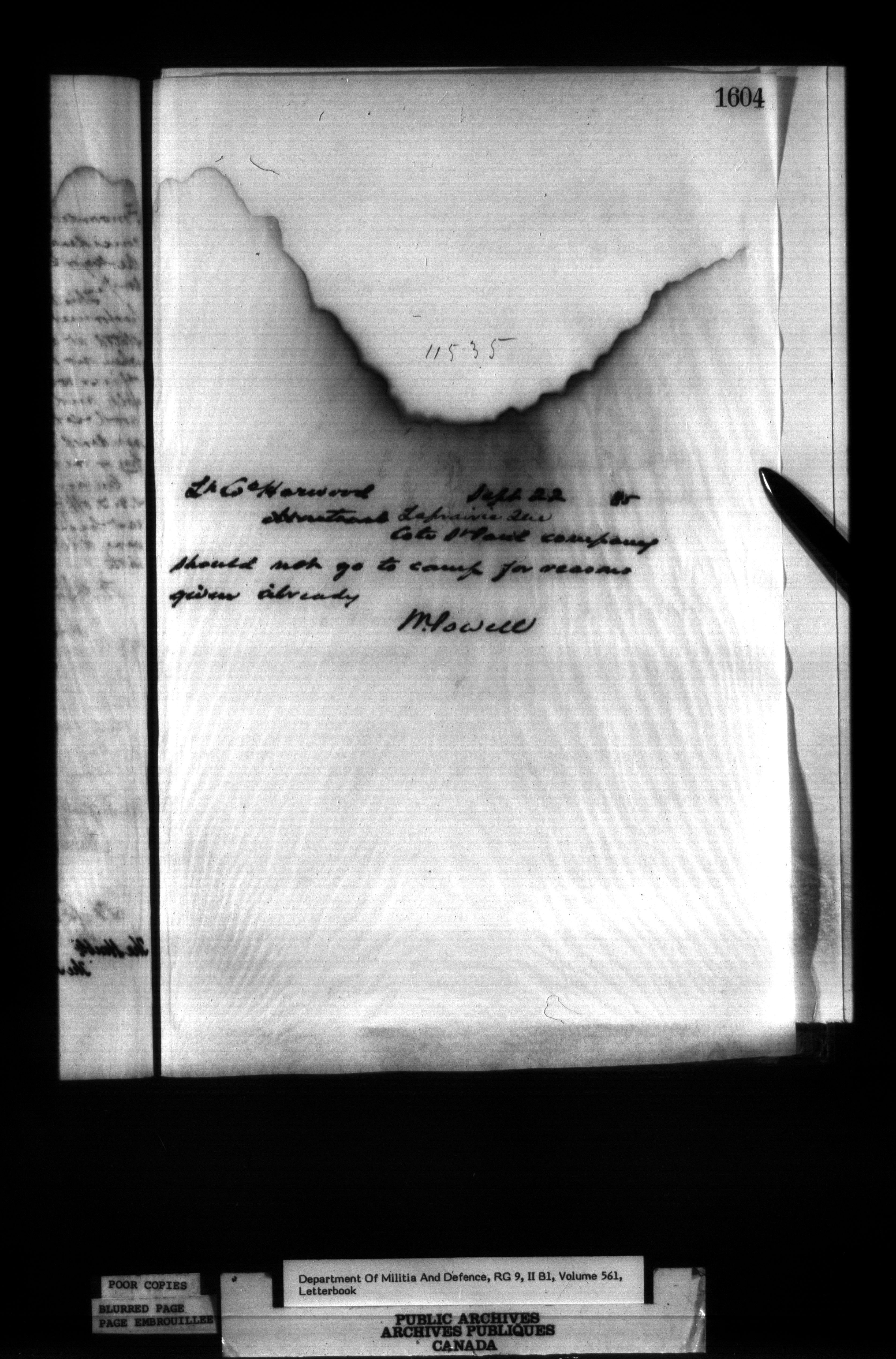 Correspondence of the General Officer Commanding (GOC) of the Canadian Militia and his predecessor, the Adjutant General - 316