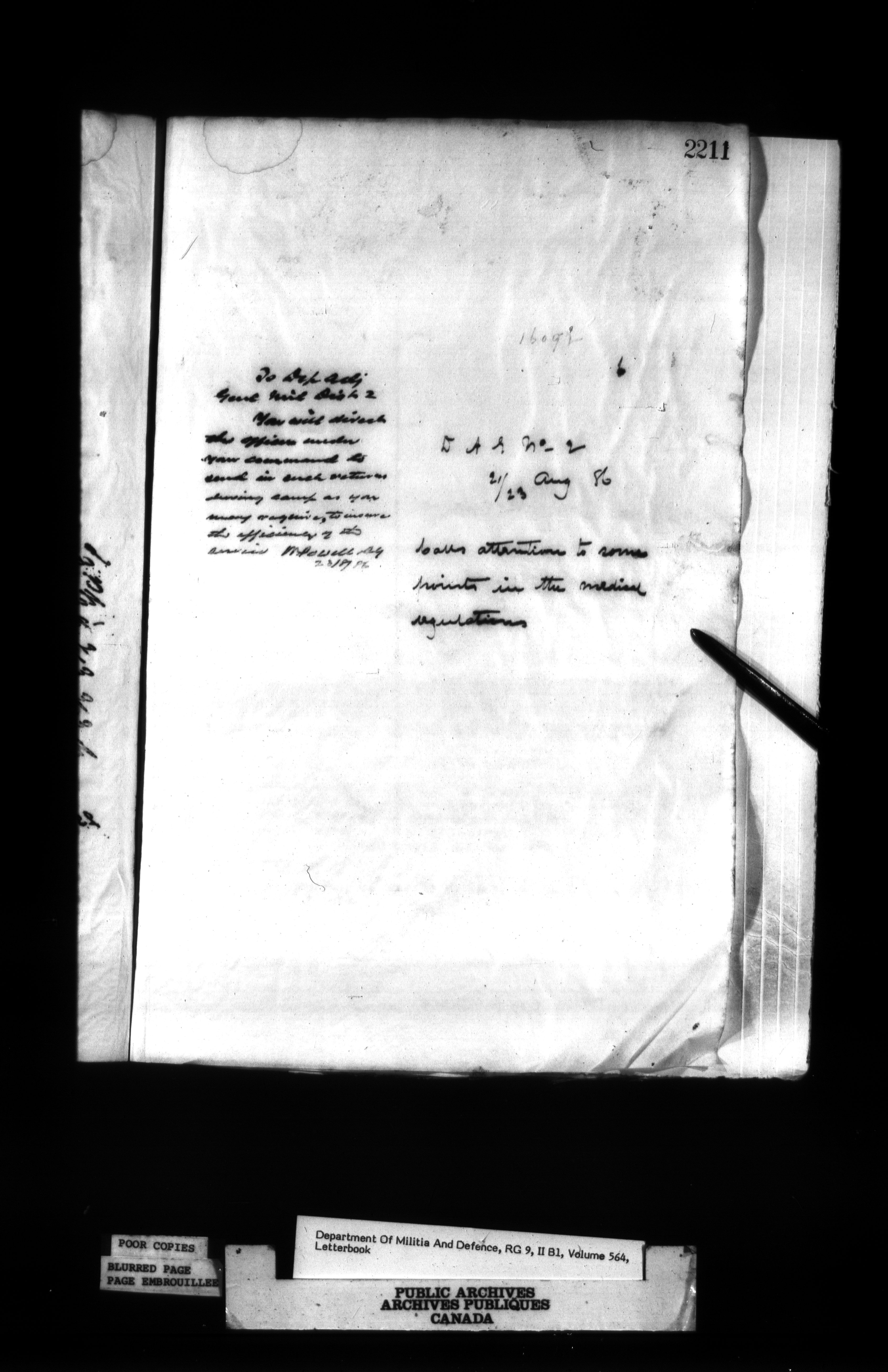 Correspondence of the General Officer Commanding (GOC) of the Canadian Militia and his predecessor, the Adjutant General - 317