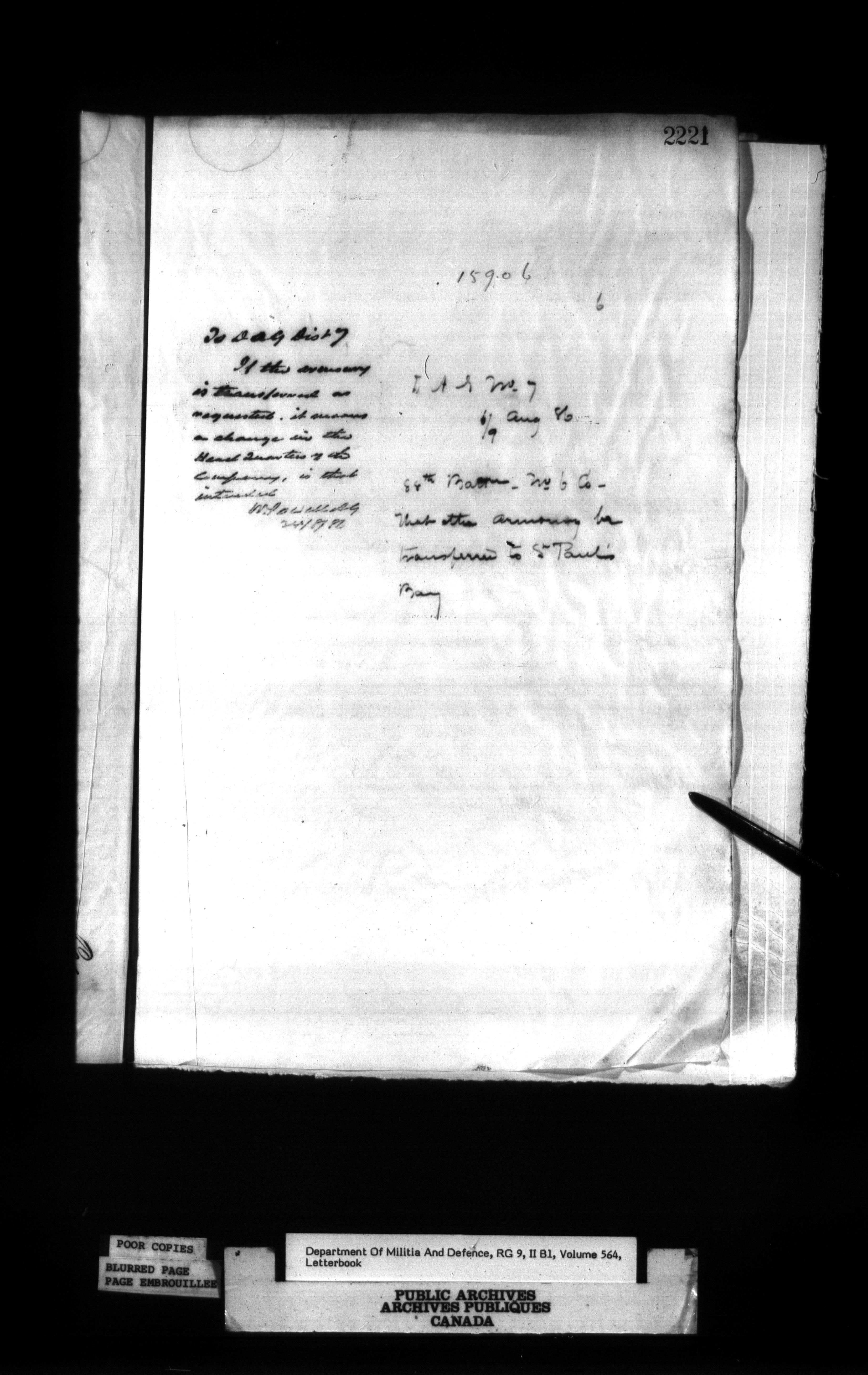 Correspondence of the General Officer Commanding (GOC) of the Canadian Militia and his predecessor, the Adjutant General - 317