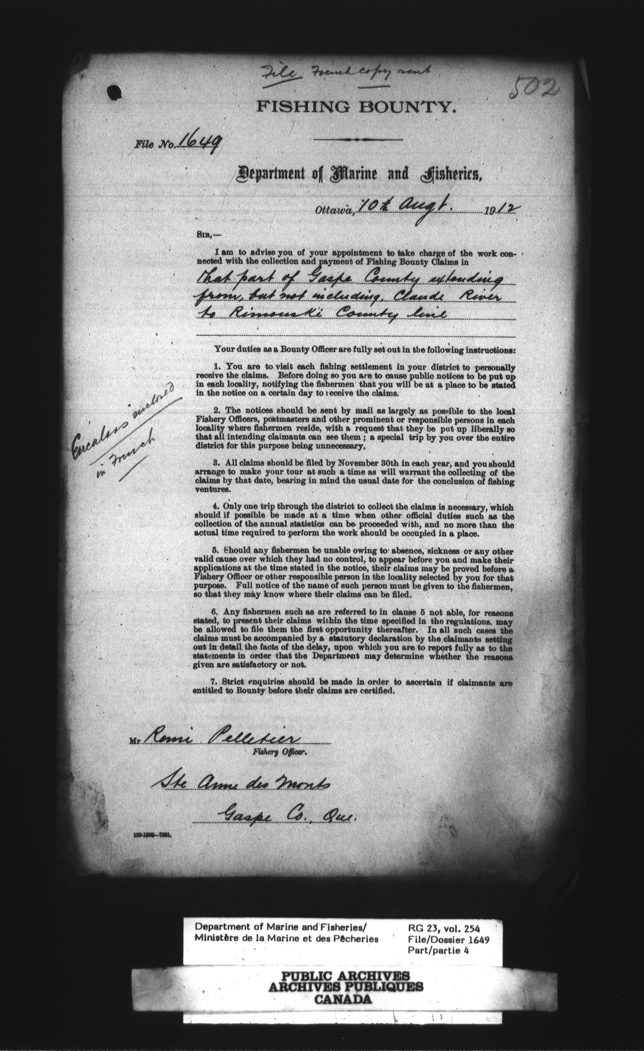 Fisheries Branch Registry files - 3175