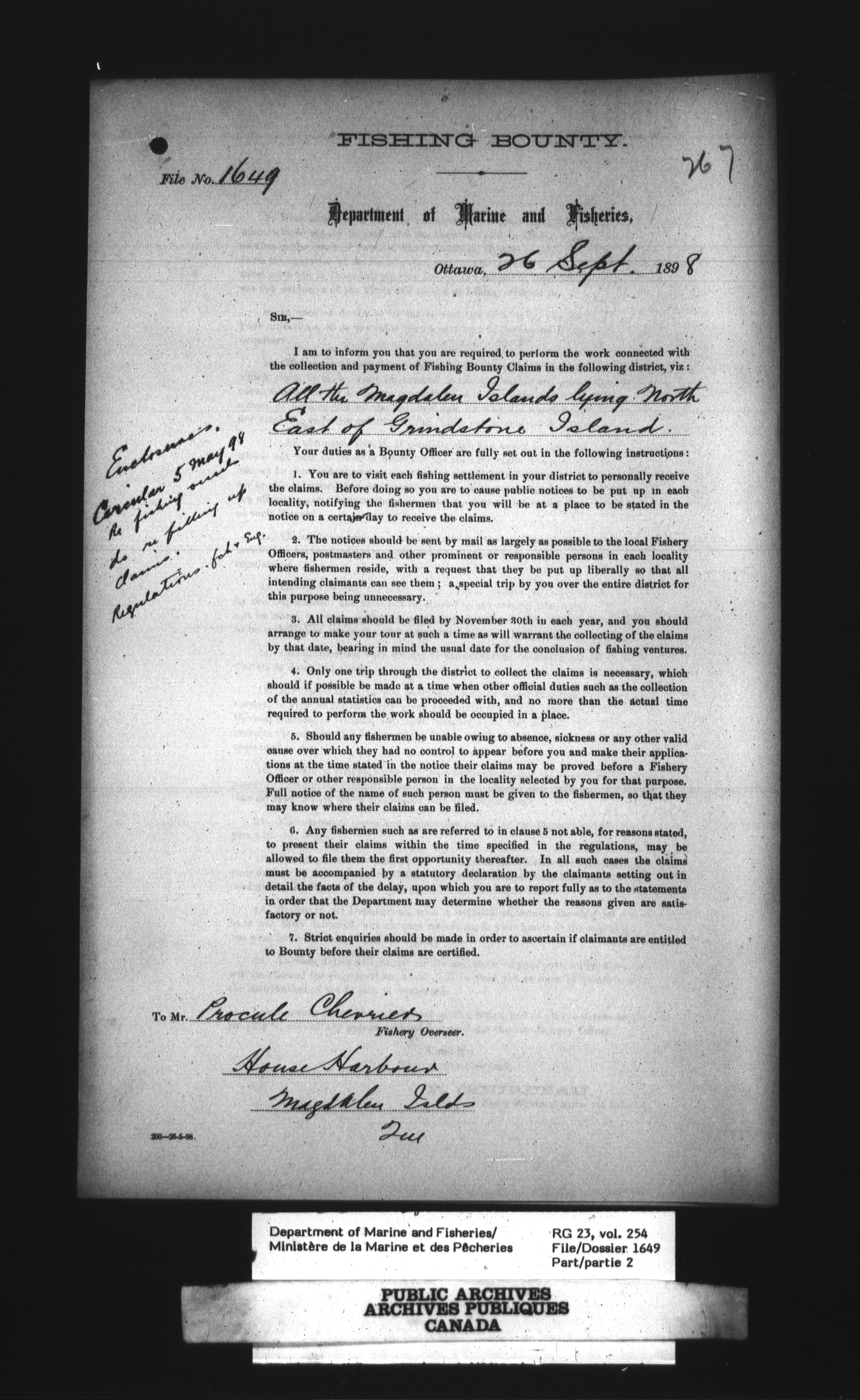 Fisheries Branch Registry files - 3175