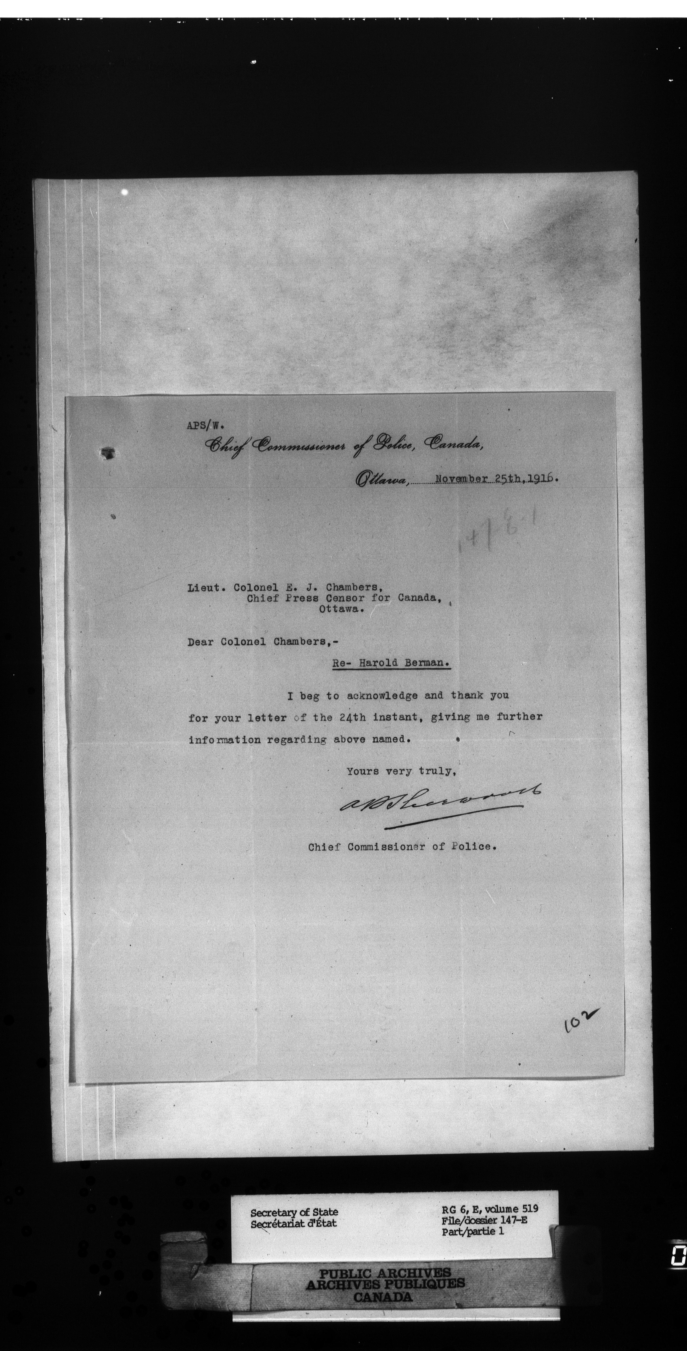 Secretary of State : Chief Press Censor : T-32