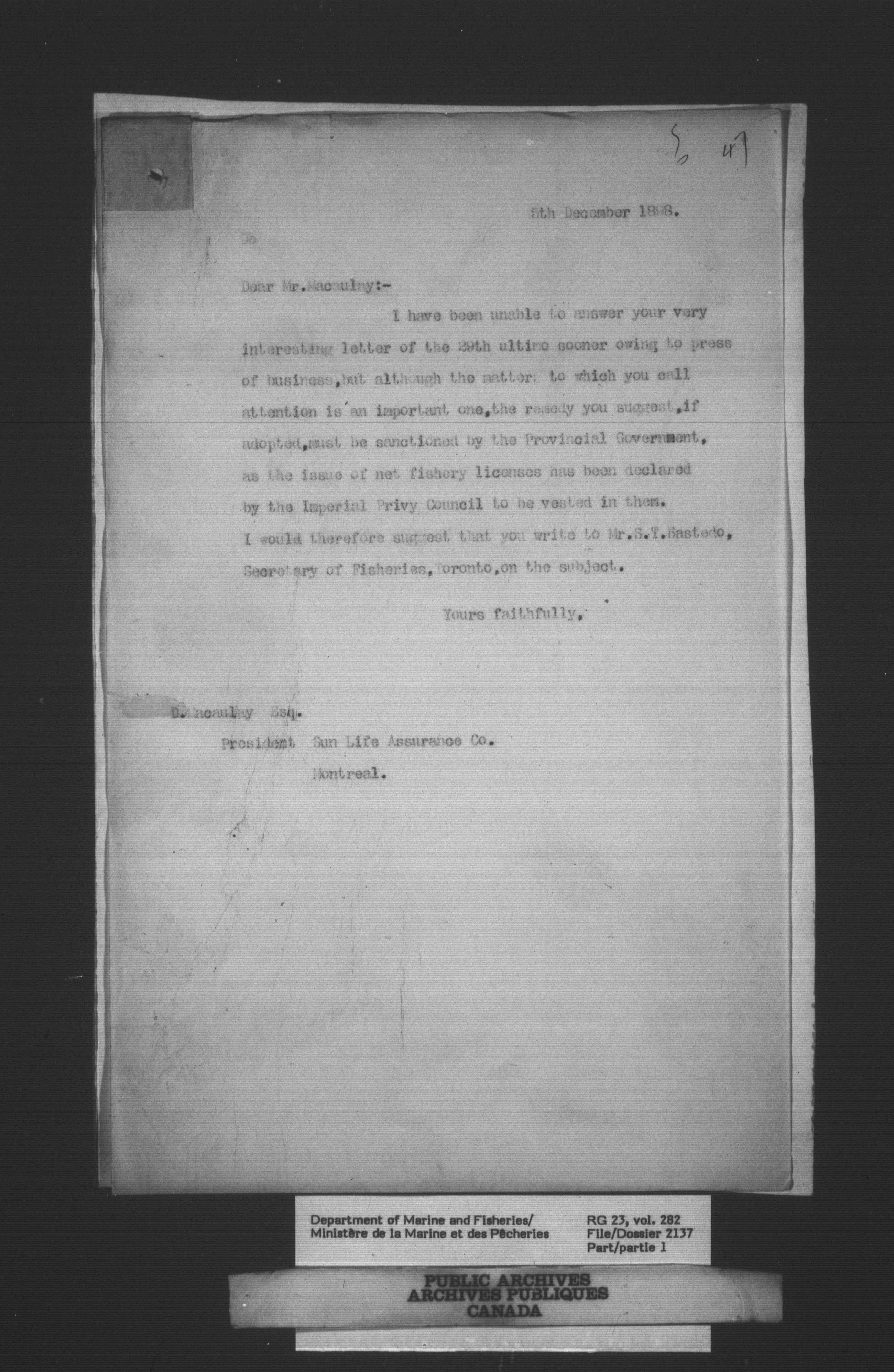 Fisheries Branch Registry files - 3206