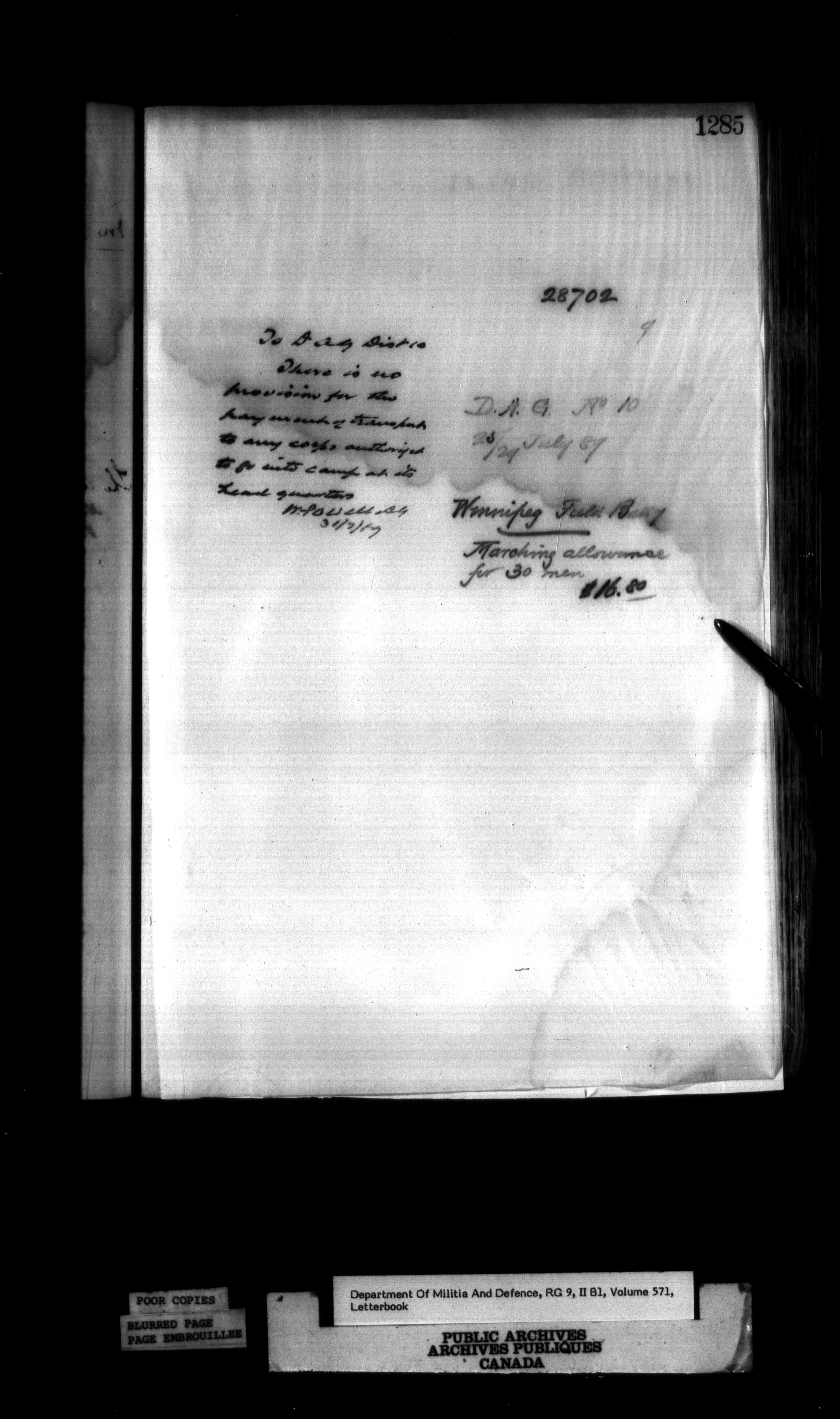 Correspondence of the General Officer Commanding (GOC) of the Canadian Militia and his predecessor, the Adjutant General - 323