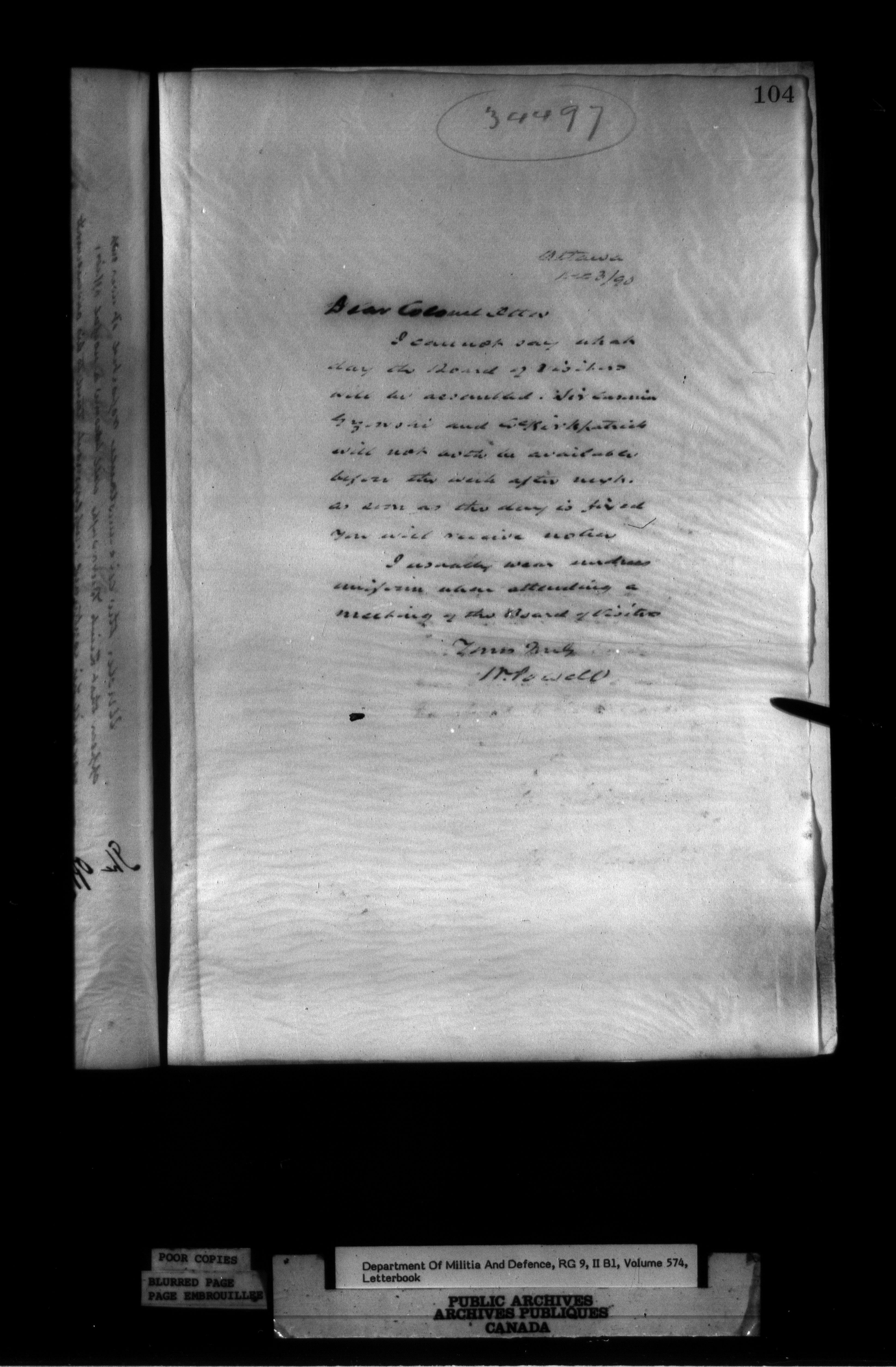 Correspondence of the General Officer Commanding (GOC) of the Canadian Militia and his predecessor, the Adjutant General - 324
