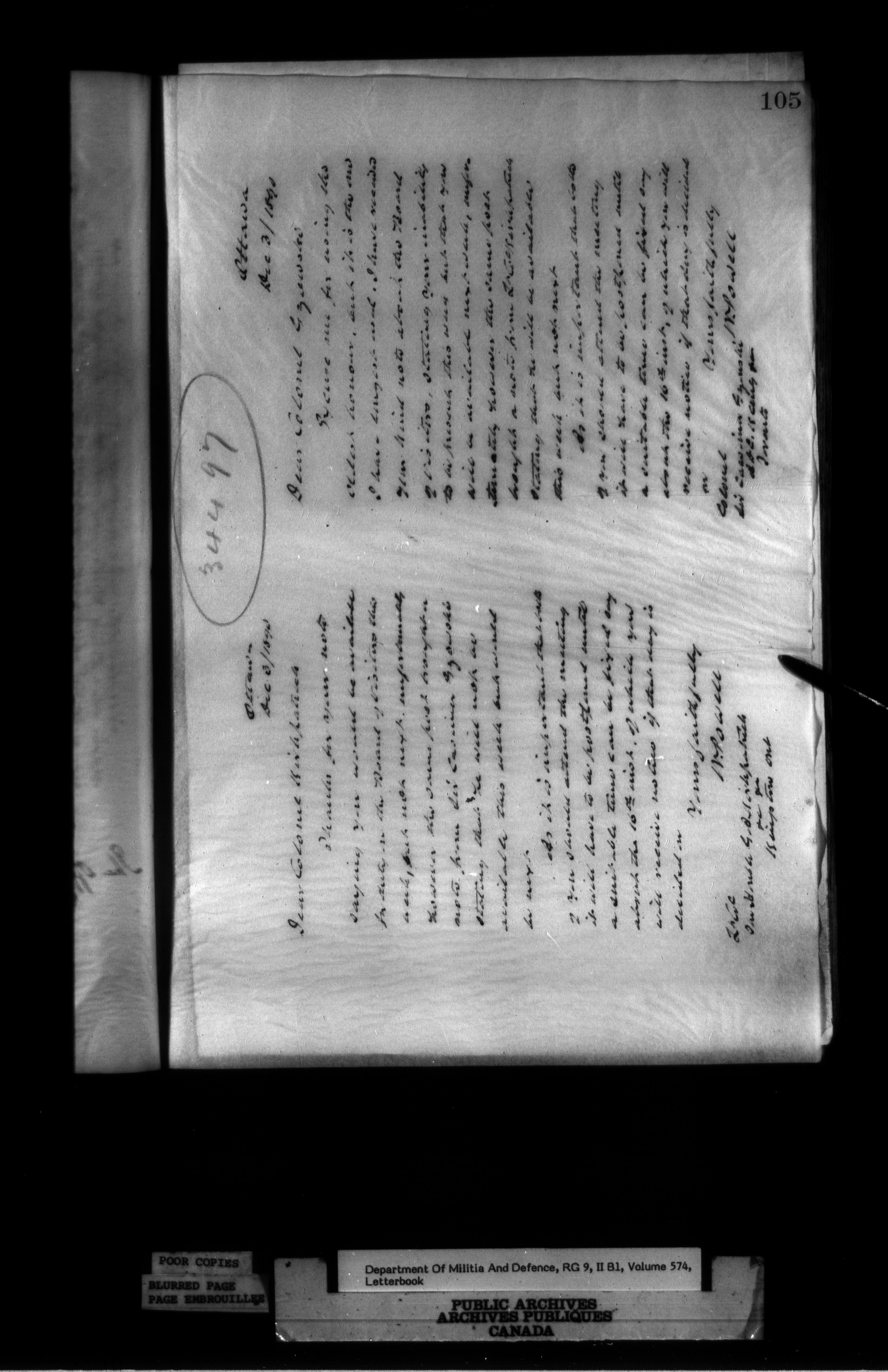 Correspondence of the General Officer Commanding (GOC) of the Canadian Militia and his predecessor, the Adjutant General - 324