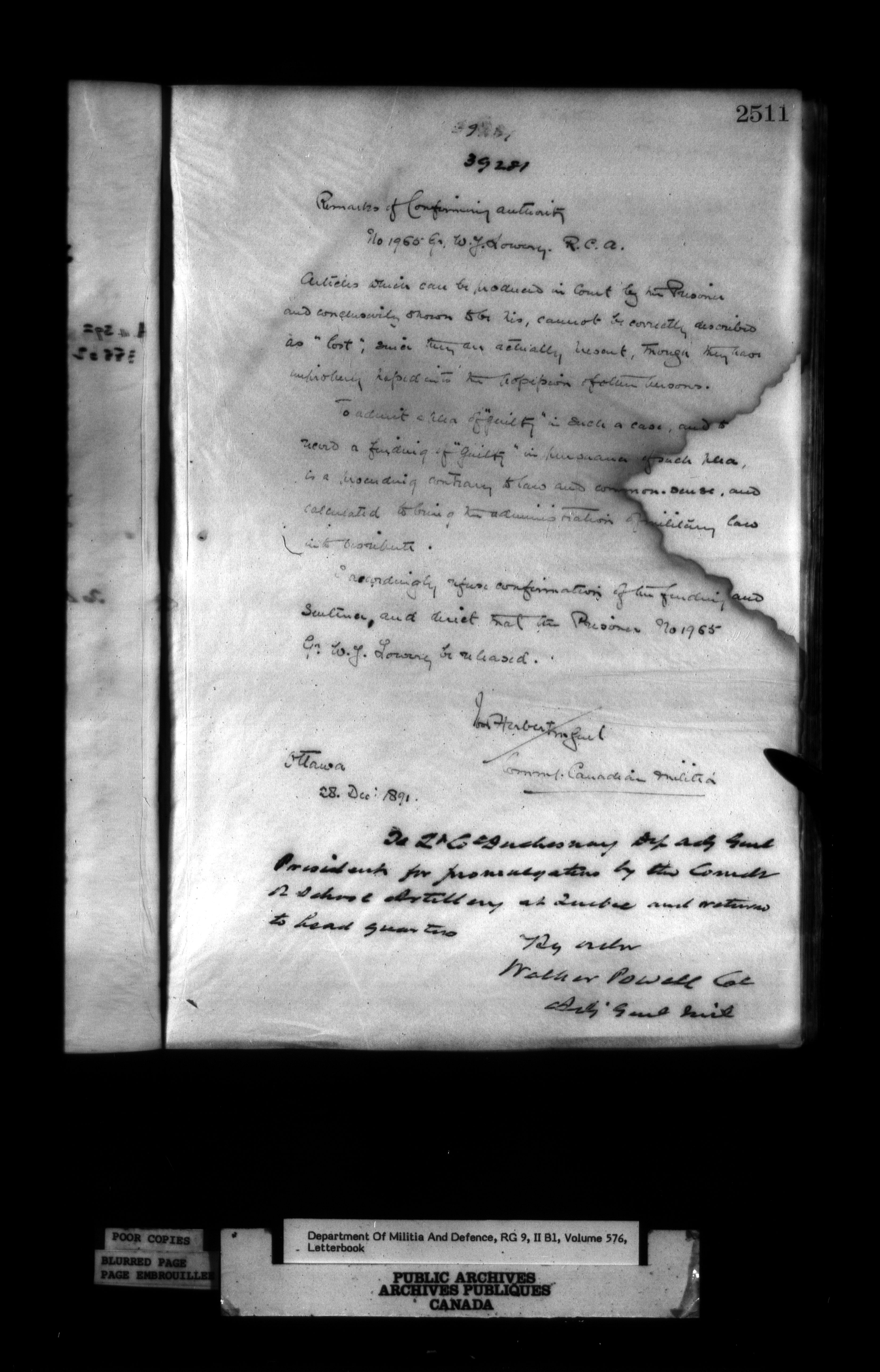 Correspondence of the General Officer Commanding (GOC) of the Canadian Militia and his predecessor, the Adjutant General - 326