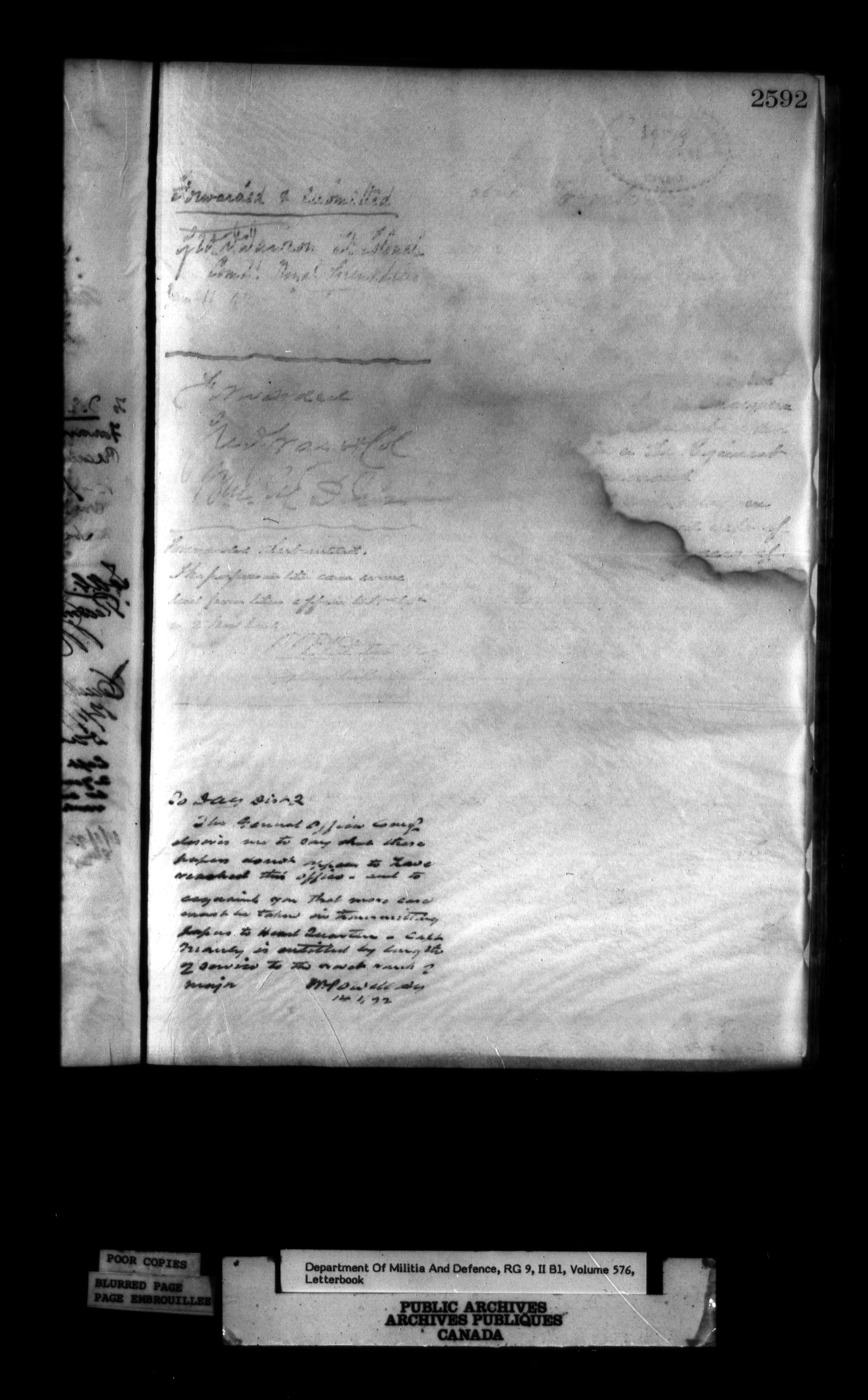 Correspondence of the General Officer Commanding (GOC) of the Canadian Militia and his predecessor, the Adjutant General - 327