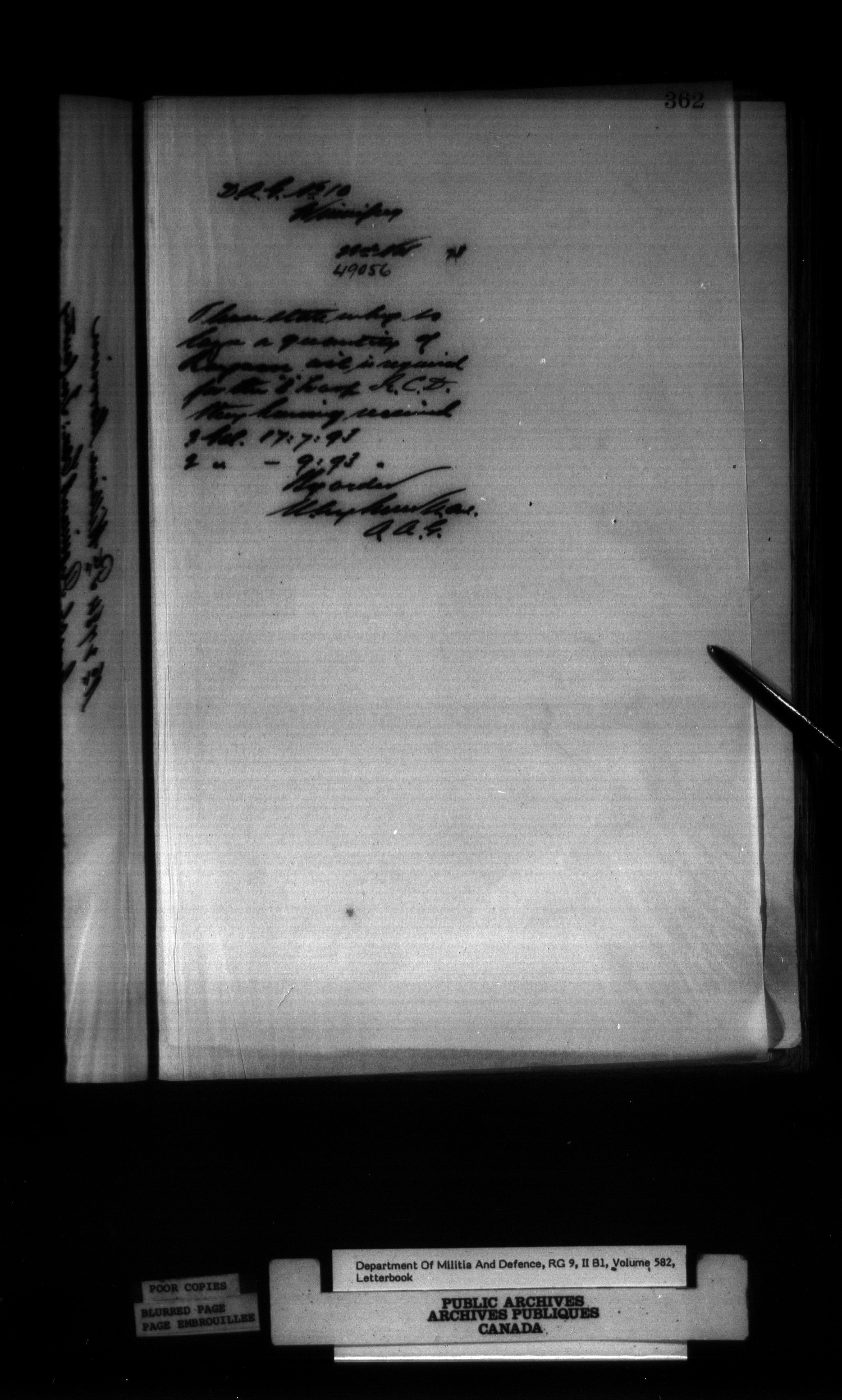 Correspondence of the General Officer Commanding (GOC) of the Canadian Militia and his predecessor, the Adjutant General - 330