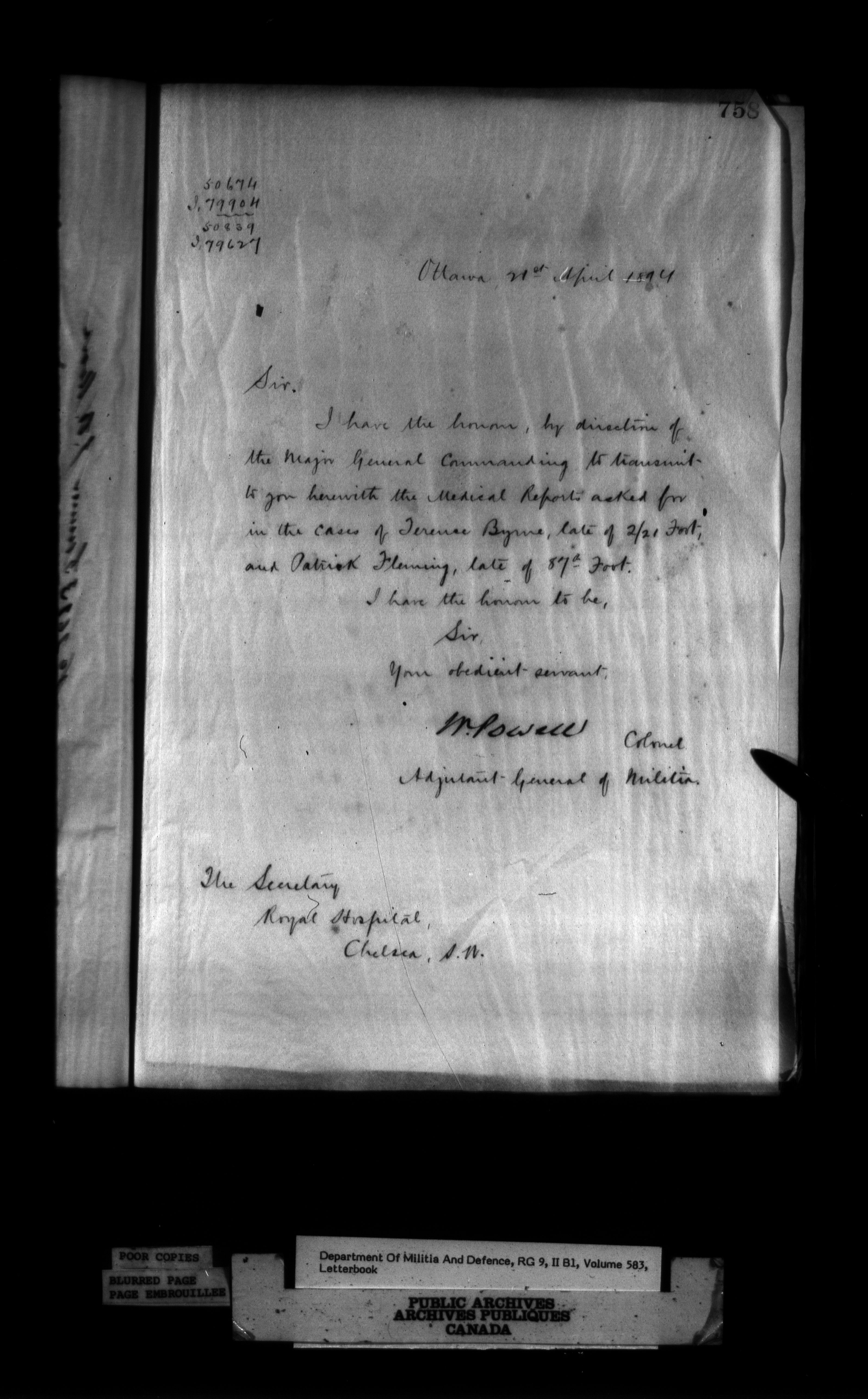 Correspondence of the General Officer Commanding (GOC) of the Canadian Militia and his predecessor, the Adjutant General - 331