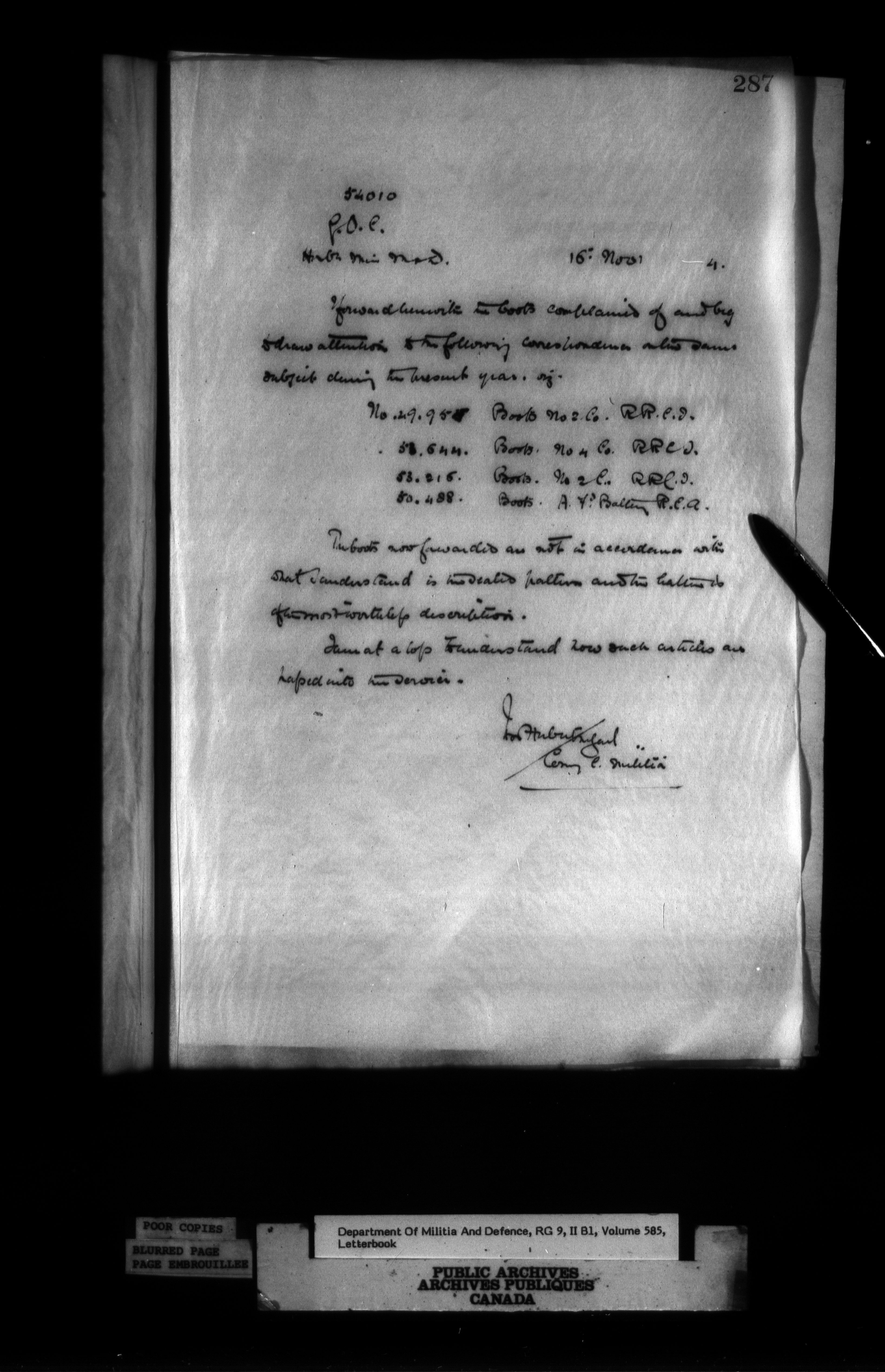 Correspondence of the General Officer Commanding (GOC) of the Canadian Militia and his predecessor, the Adjutant General - 332