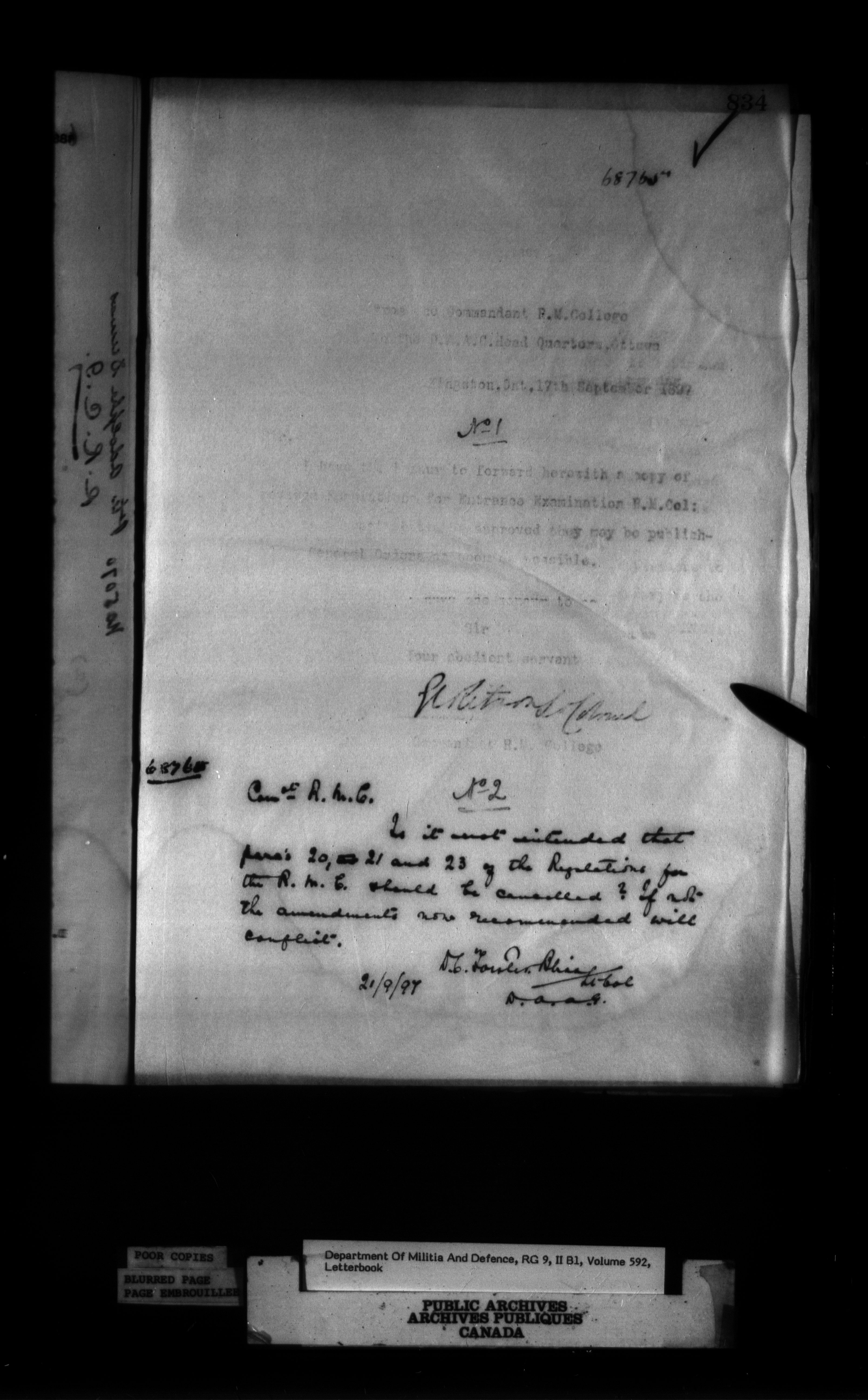 Correspondence of the General Officer Commanding (GOC) of the Canadian Militia and his predecessor, the Adjutant General - 337