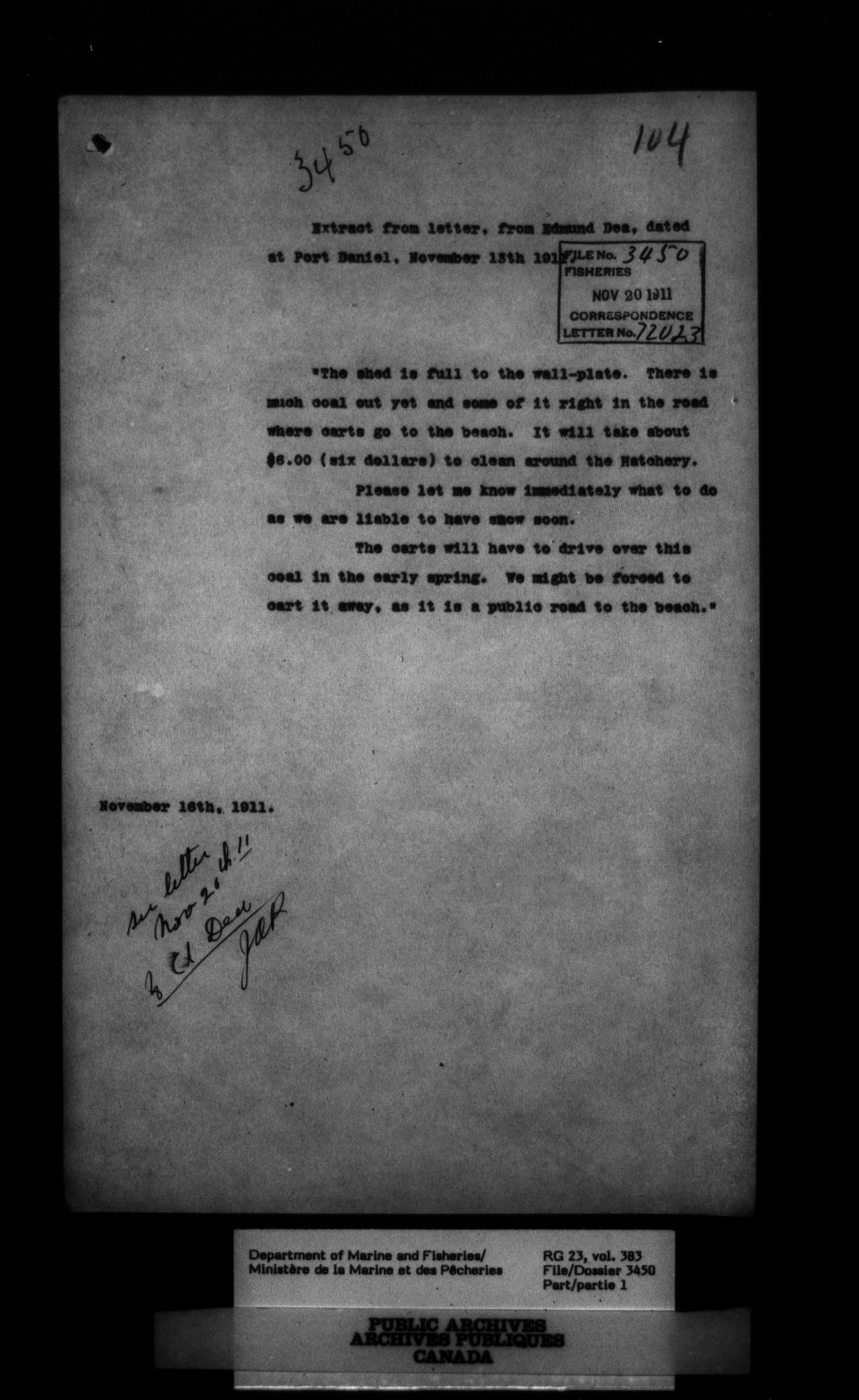 Fisheries Branch Registry files - 3373