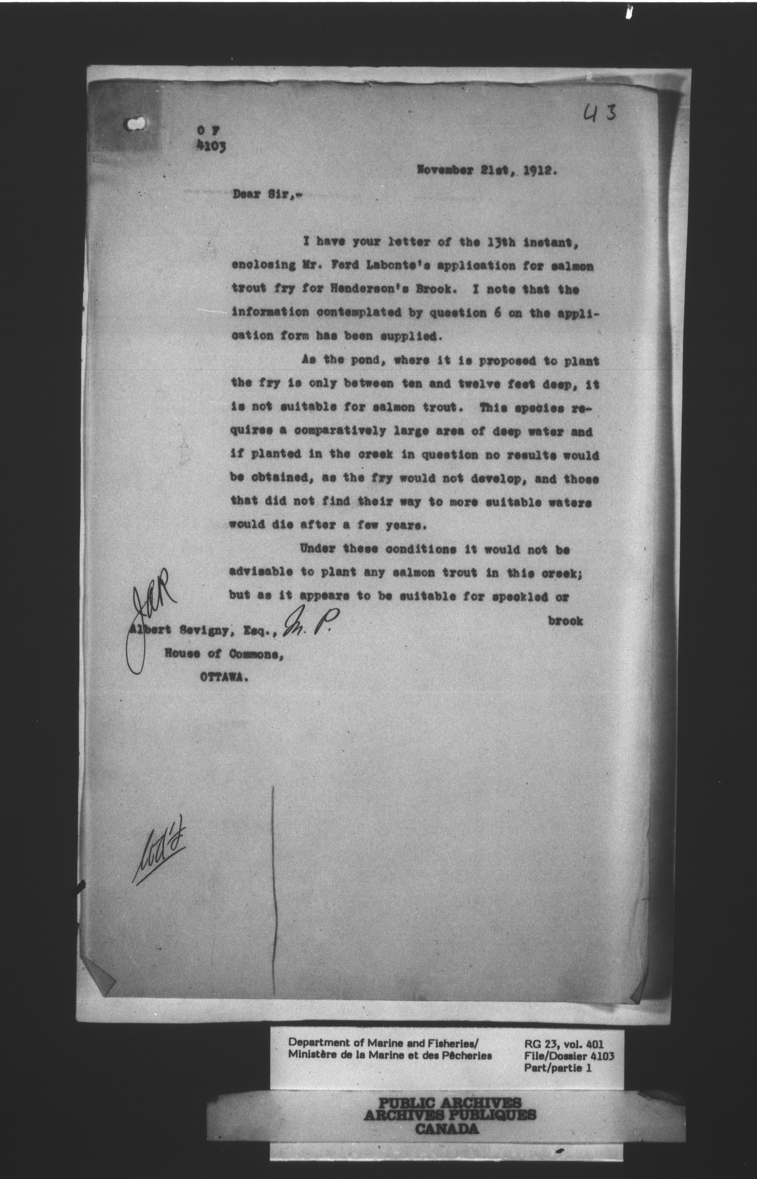 Fisheries Branch Registry files - 3389