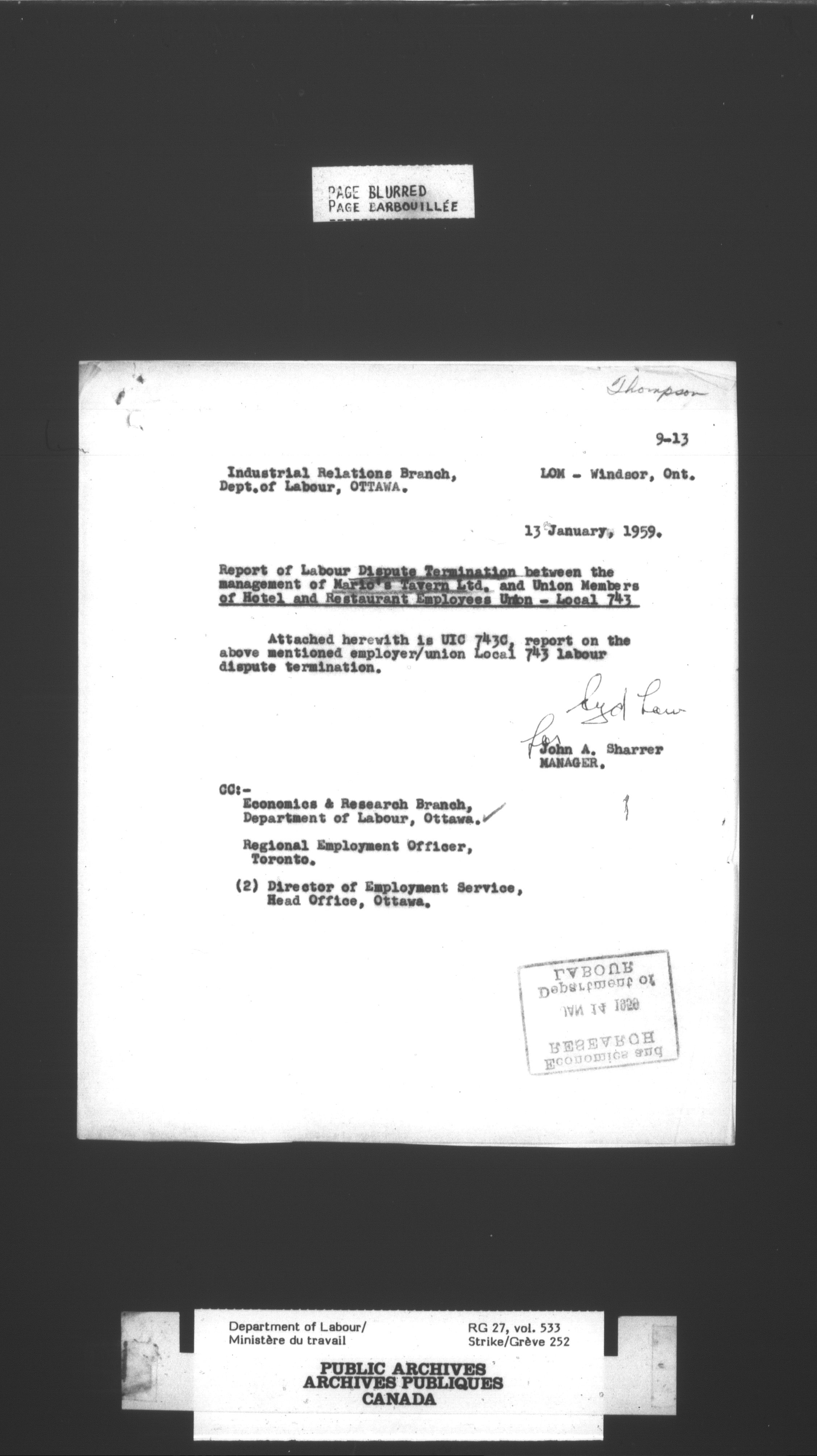 Department of Labour, Economics and Research Branch : Strikes and lockout files - 3398