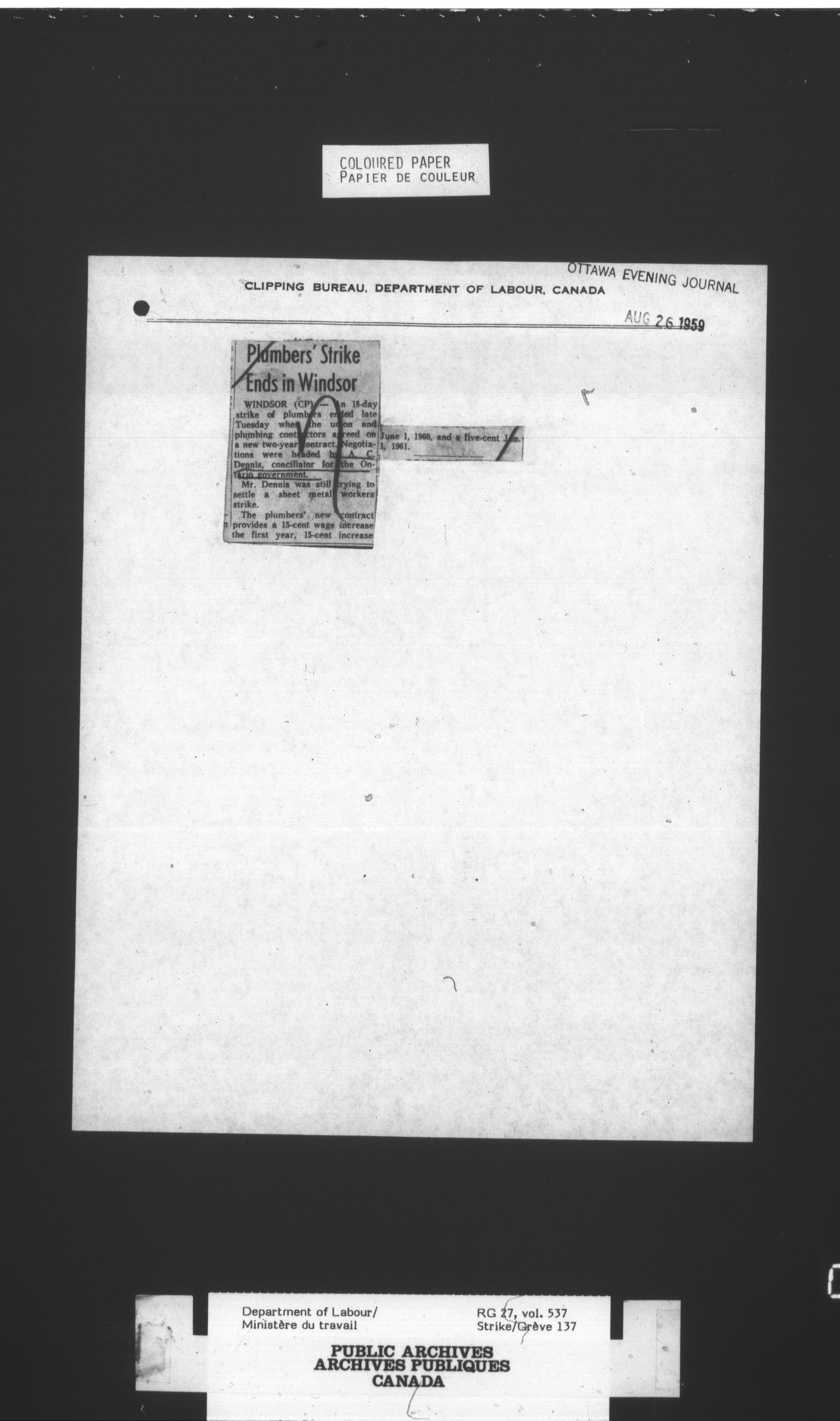 Department of Labour, Economics and Research Branch : Strikes and lockout files - 3399