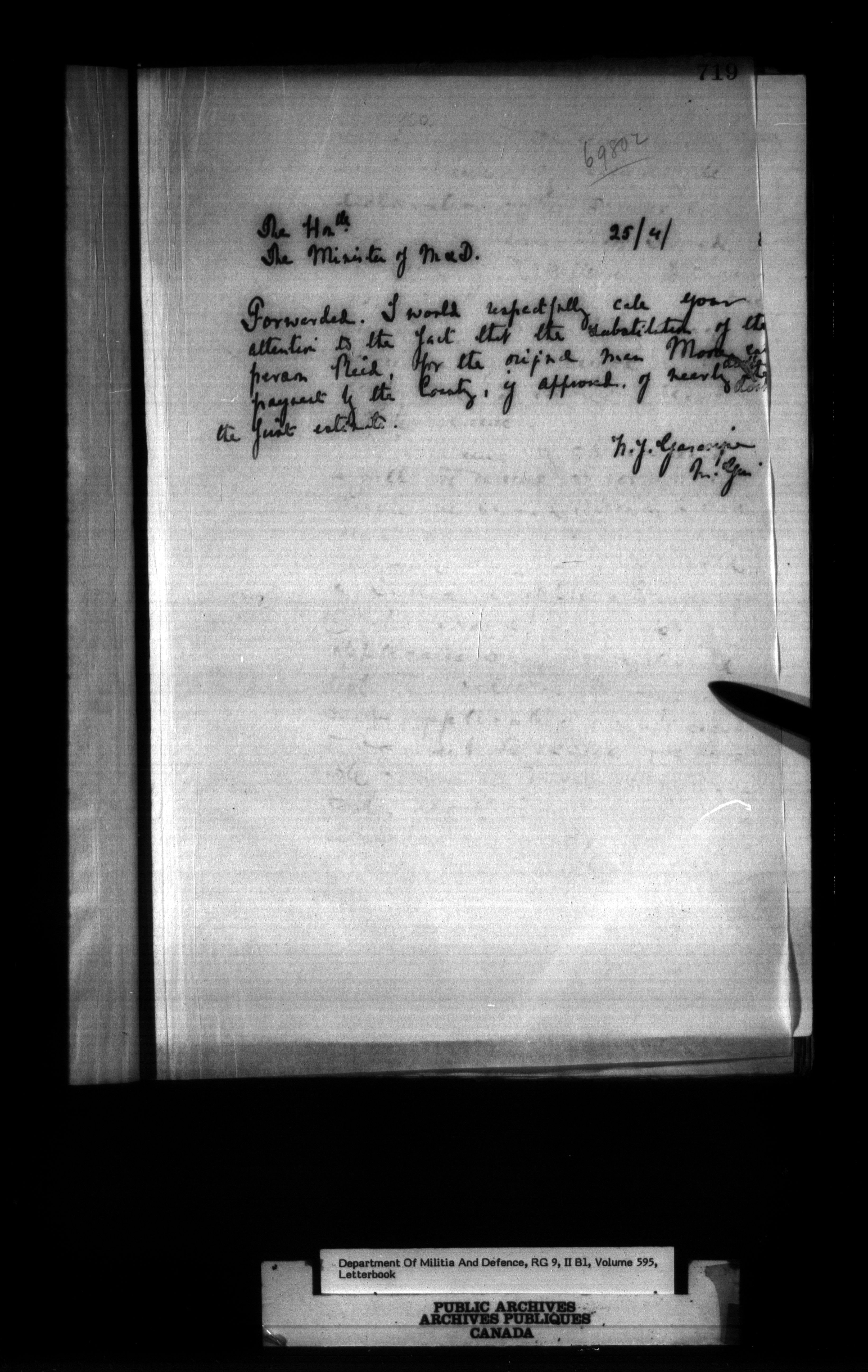 Correspondence of the General Officer Commanding (GOC) of the Canadian Militia and his predecessor, the Adjutant General - 340