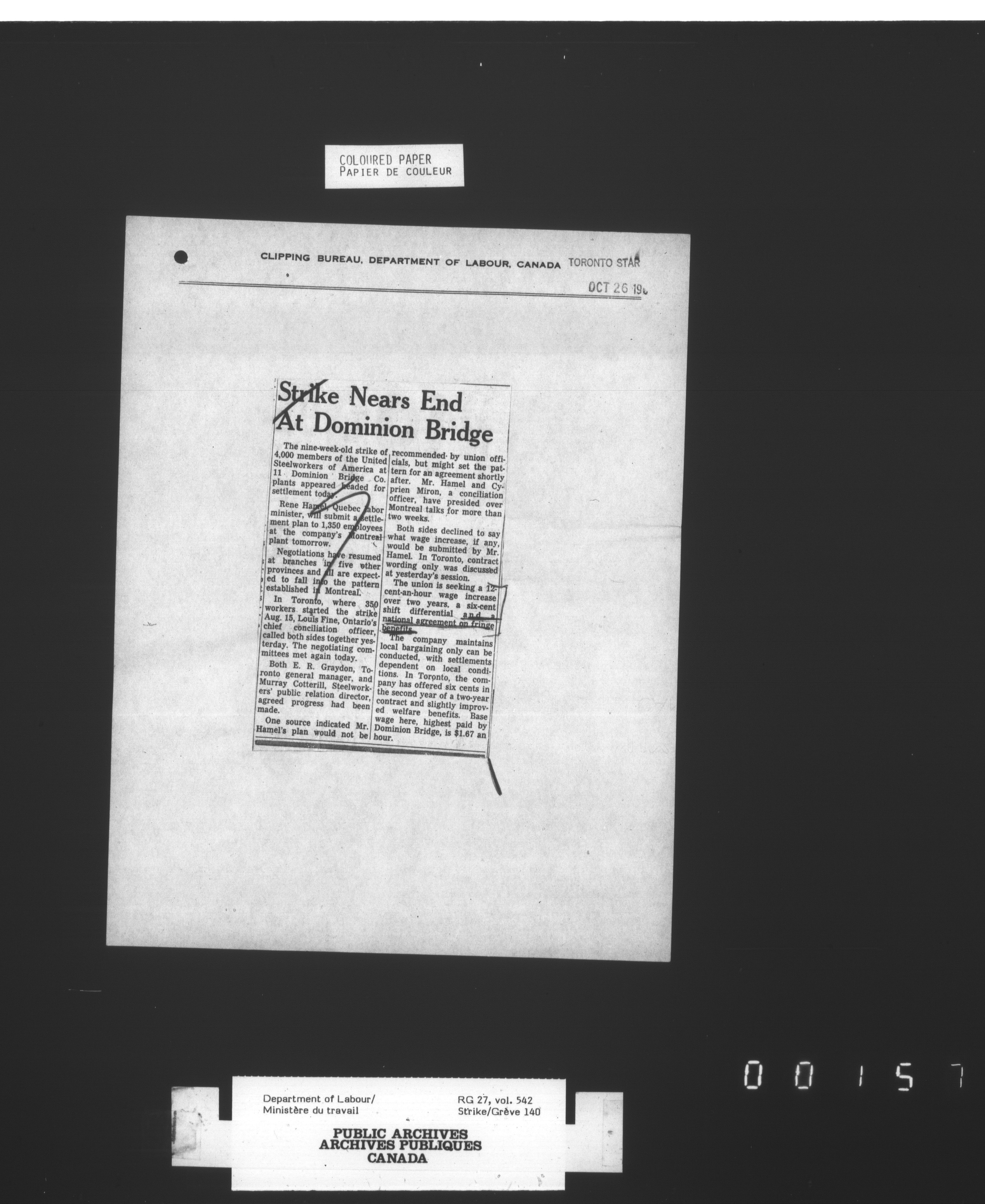 Department of Labour, Economics and Research Branch : Strikes and lockout files - 3401
